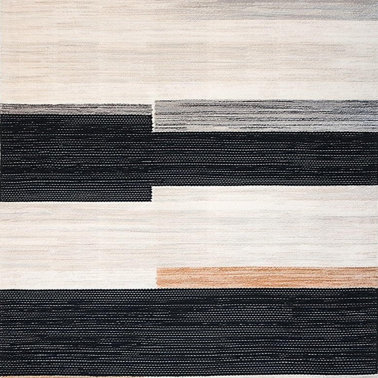 Boho Chic Black and Beige Area Abstract Stripe(Beige)
