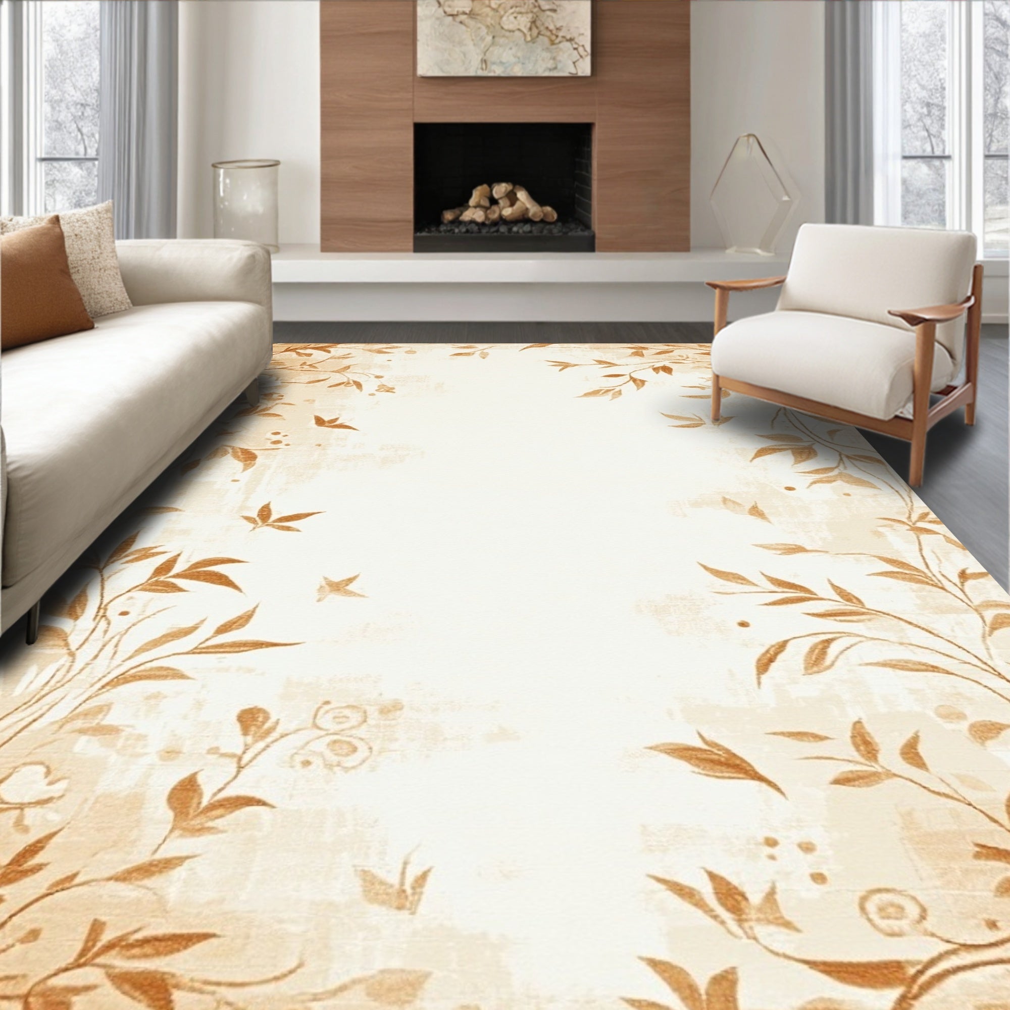 Boho Chic Floral Area Non Slip Kid Safe Low Pile(Beige)