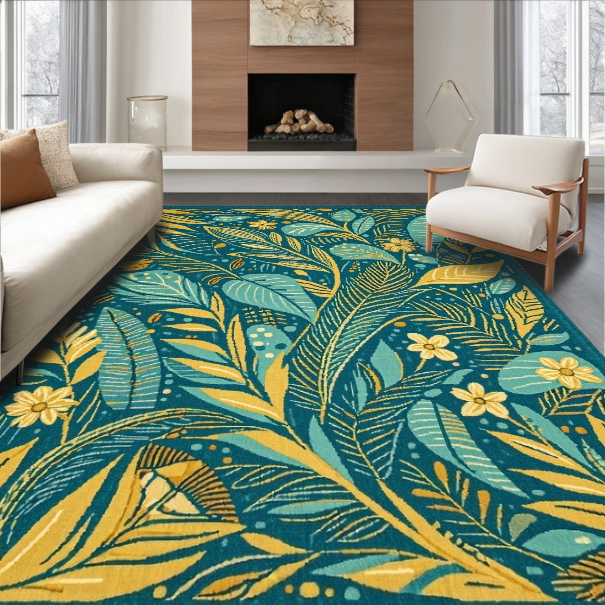 Boho Green Botanical Entryway Non Slip(Green)