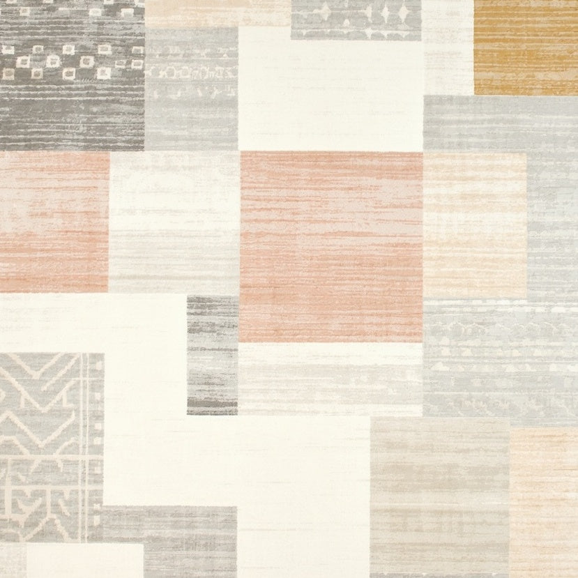 Boho Retro Area with Abstract Beige Checkerboard and Artistic Linework(Gray)