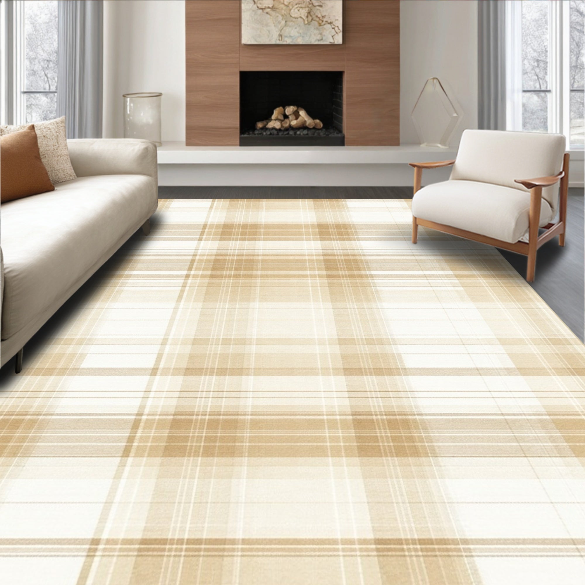 Boho Plaid Area Rug Modern Farmhouse Style Rug with Orange & Black Pattern(Orange)