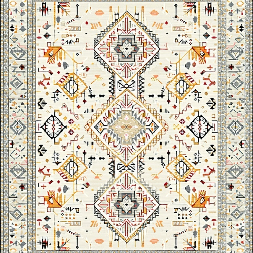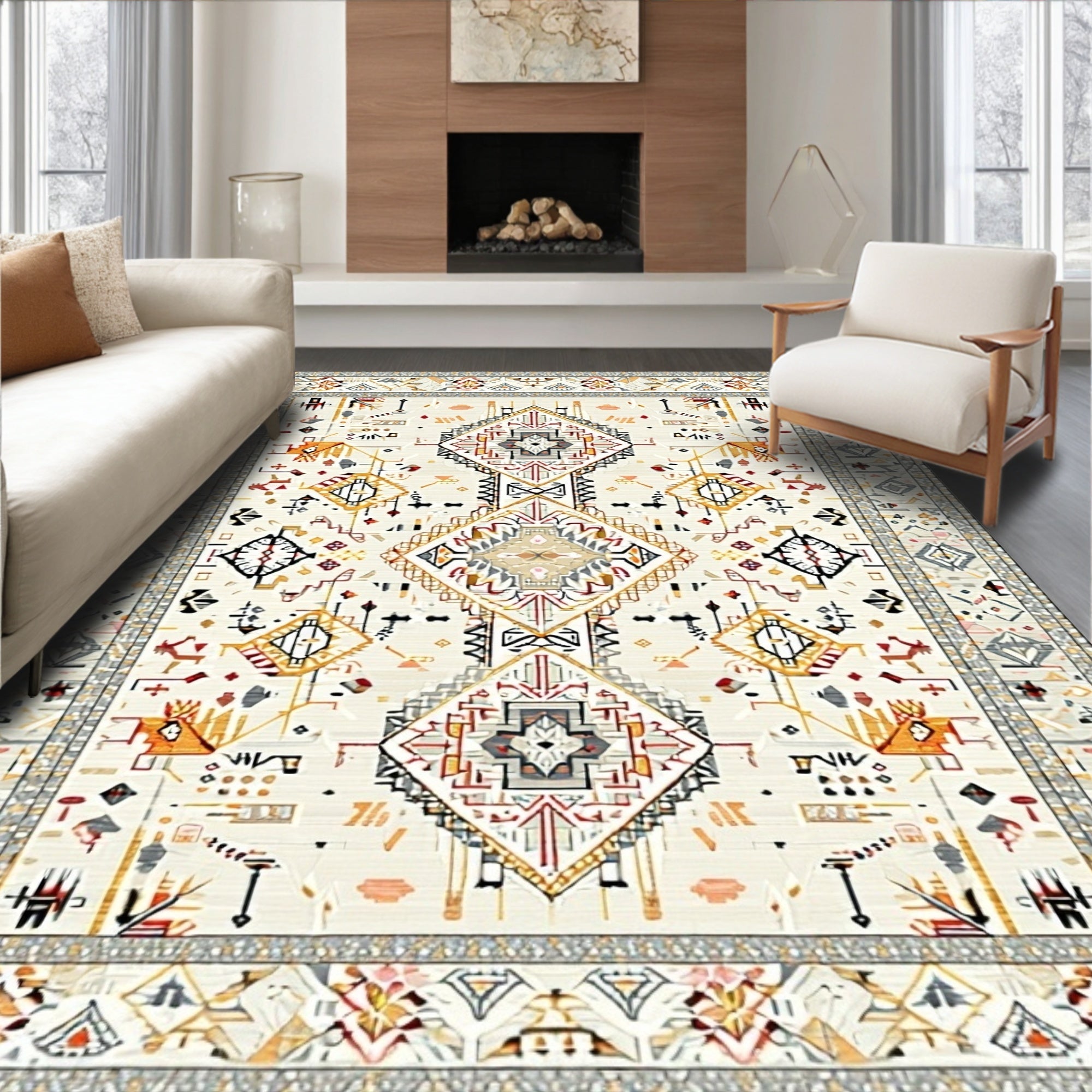 Boho Style Area Low Pile Geometric Design in Beige(Beige)