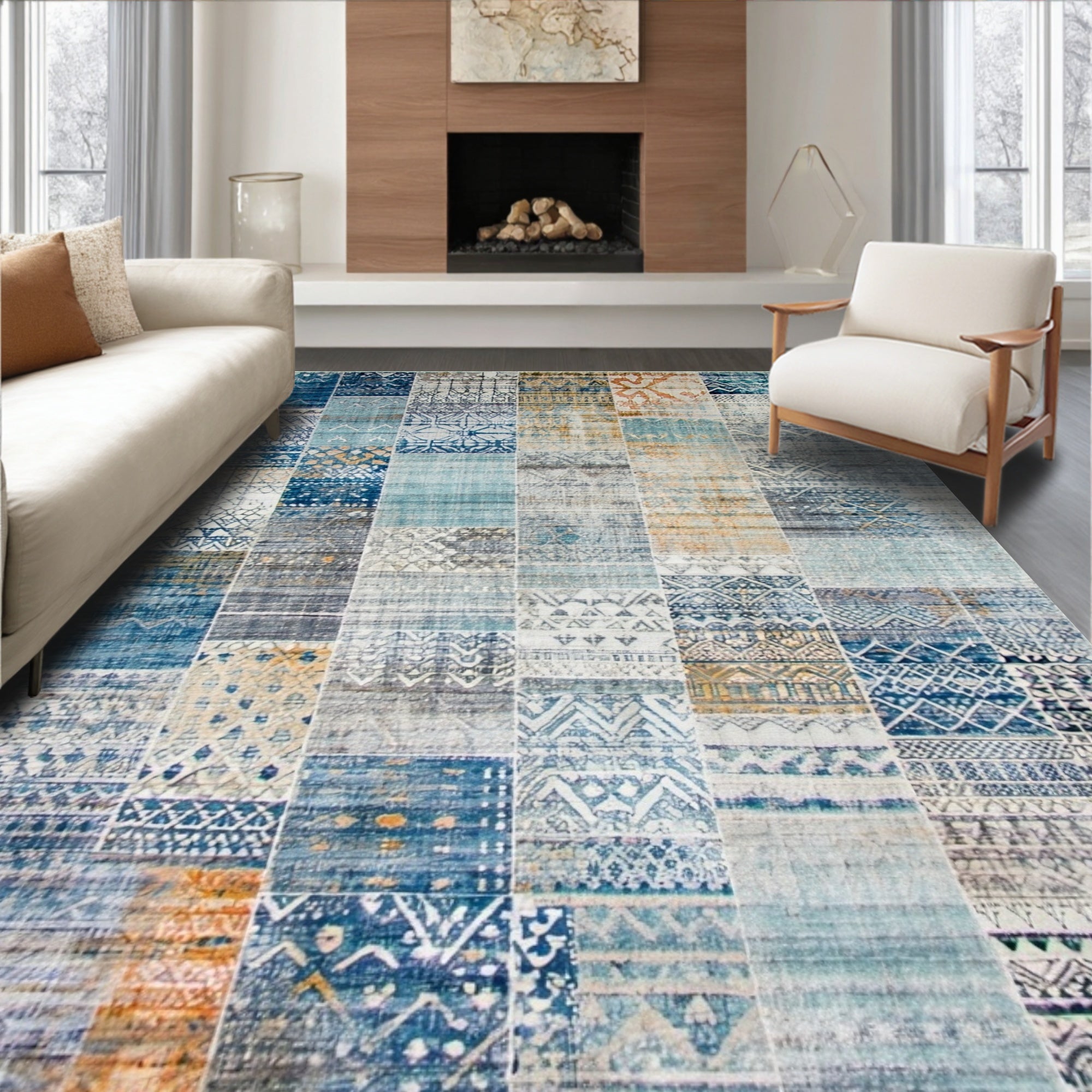 Boho Style Beige Non Shedding Slip Low Pile Modern(Brown)