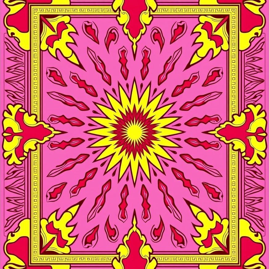 Boho Sunburst Trellis Design with Whimsical Arabesque Flourishes(Pink)