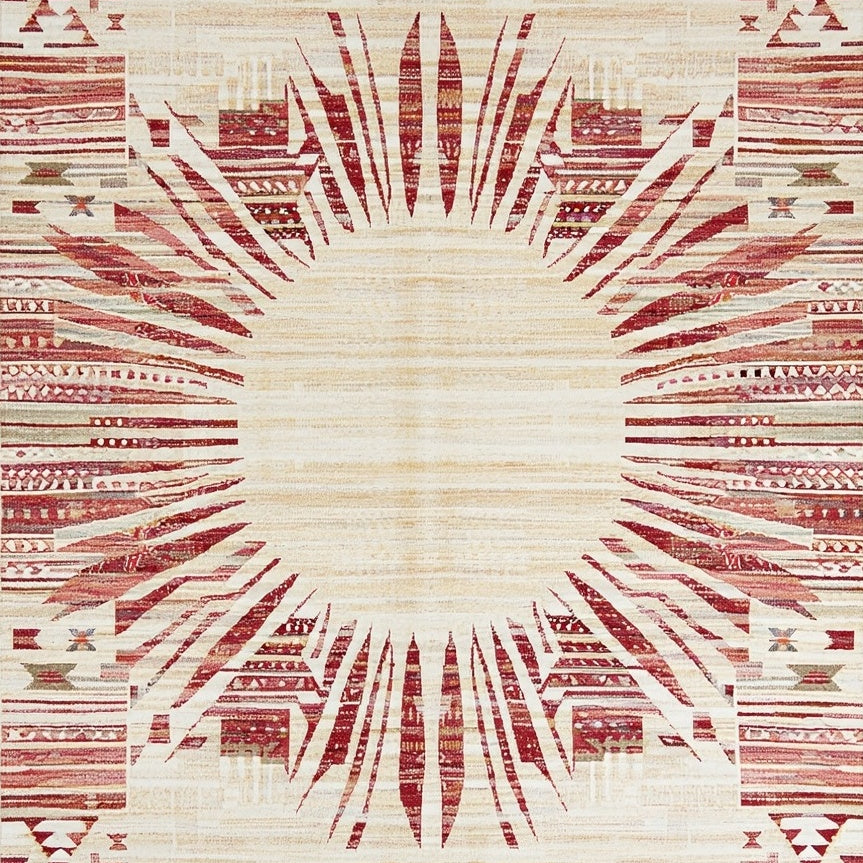 Boho Sunburst Round Beige/Burgundy(Red)