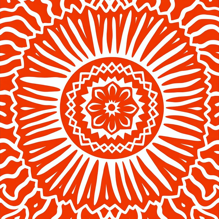 Boho Sunray Mosaic Showcasing Abstract Petal and Interlocking Details(Orange)