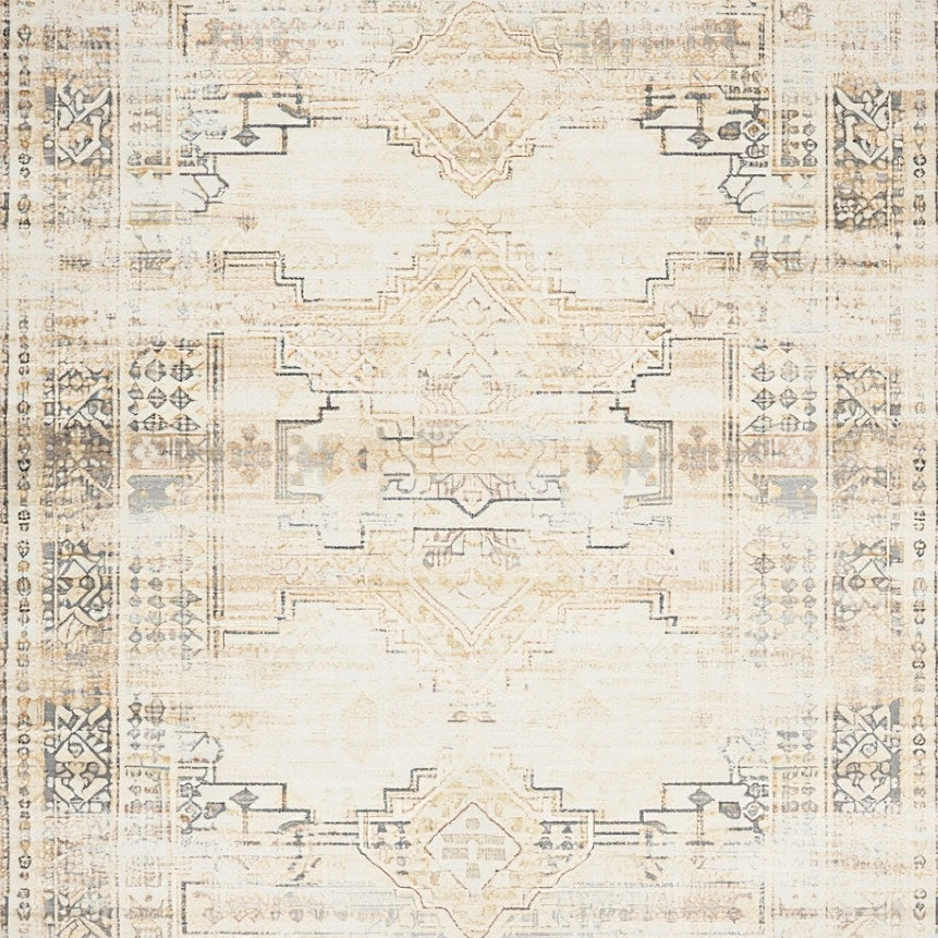 Boho Sunburst Mosaic with Ornate Floral Medallions(Beige)
