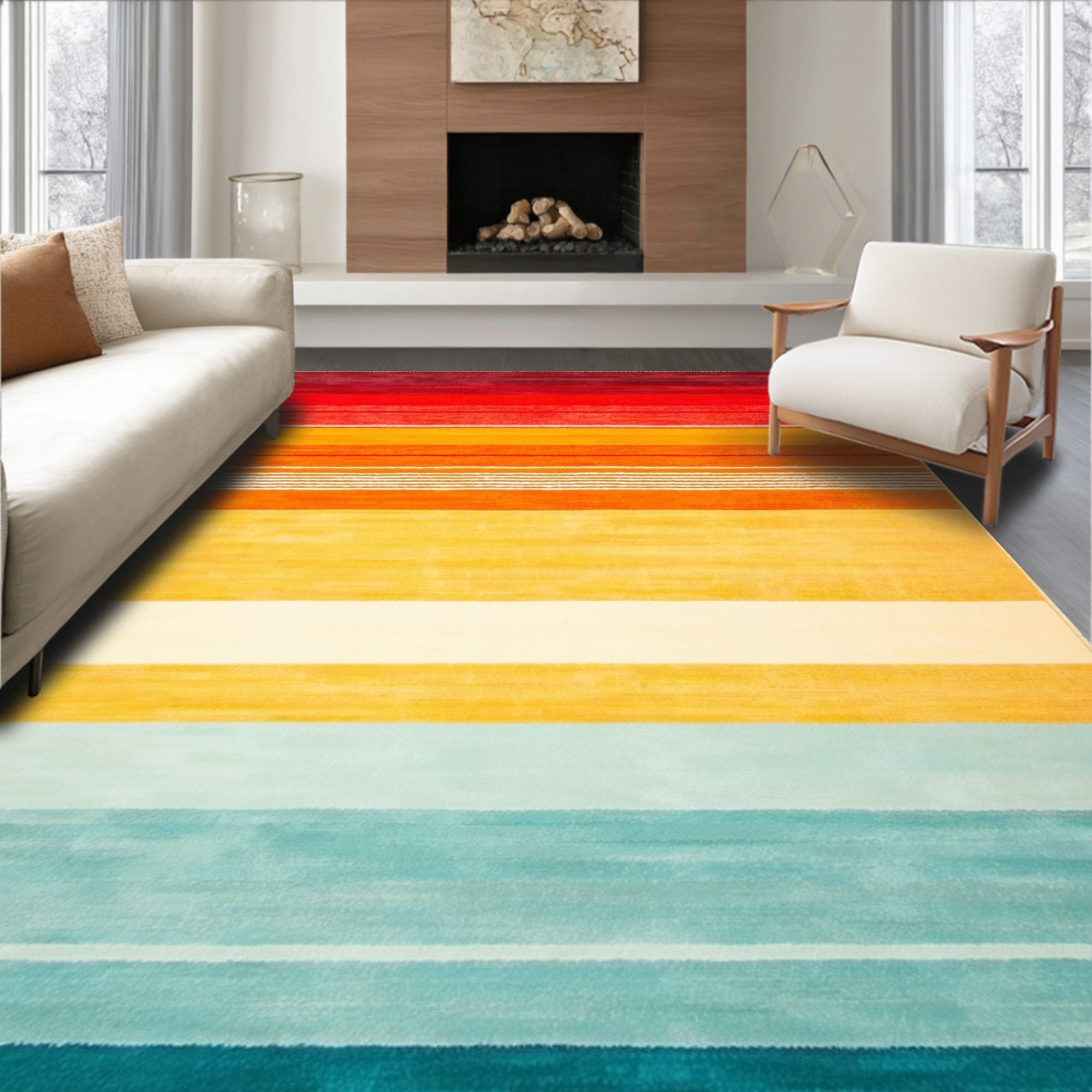 Boho Sunrise Stripe Rug With Easy Clean Surface For Versatile Decorating(Red)
