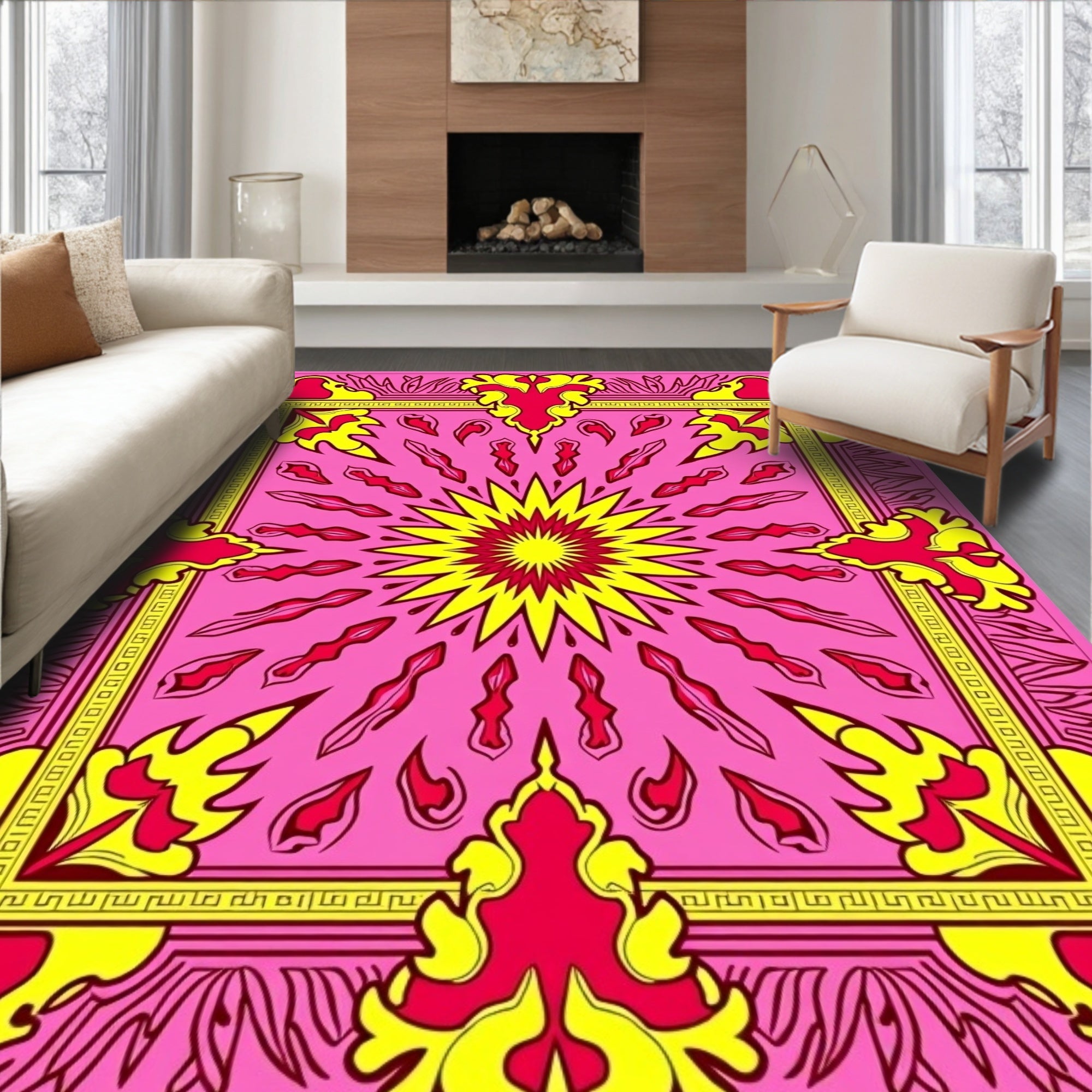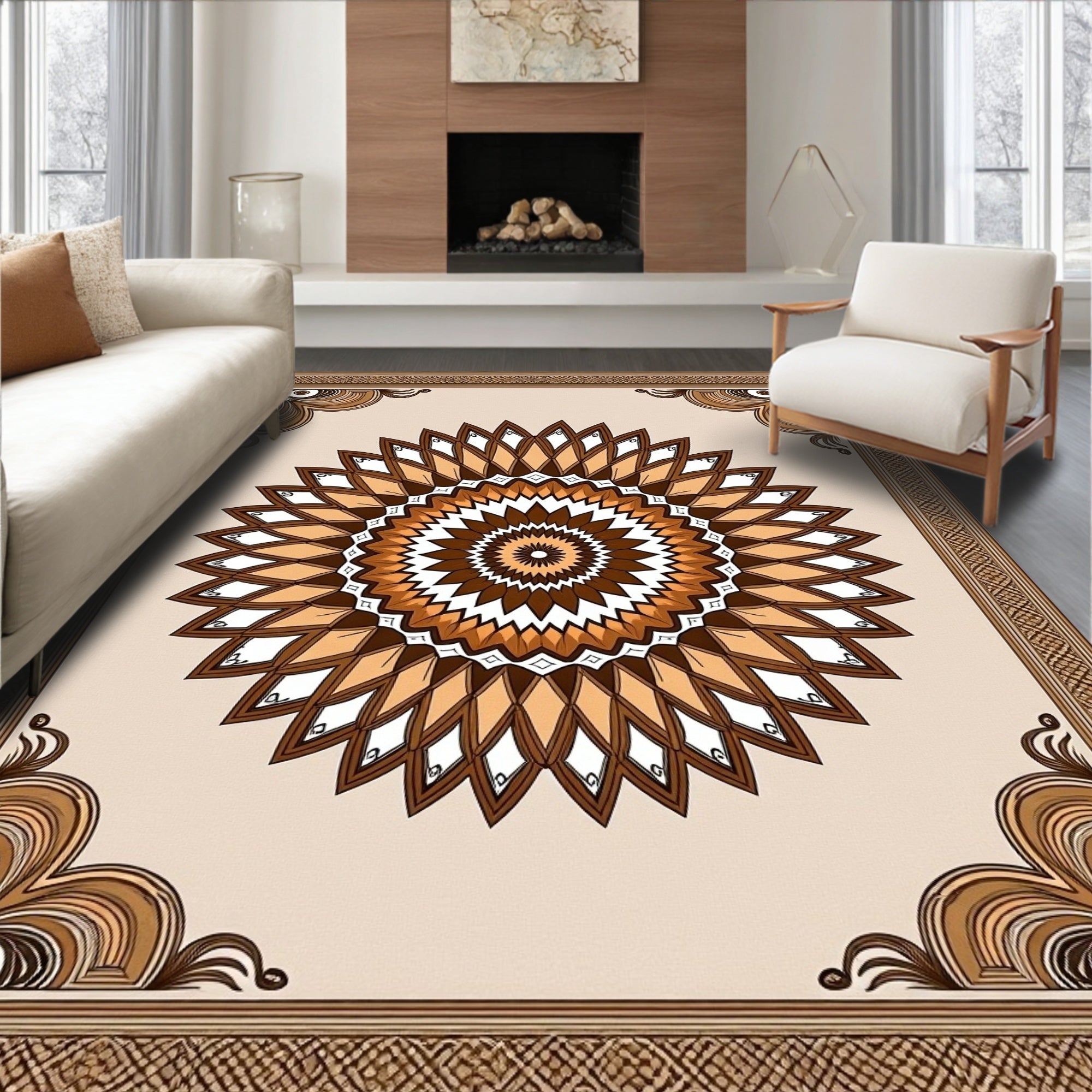Boho Sunburst Traditional Floor Covering(Beige)