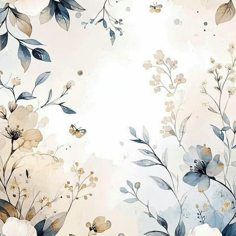 Boho Watercolor Flower Area with Cream Tan Blue Grey Petal Motifs Print(Beige)