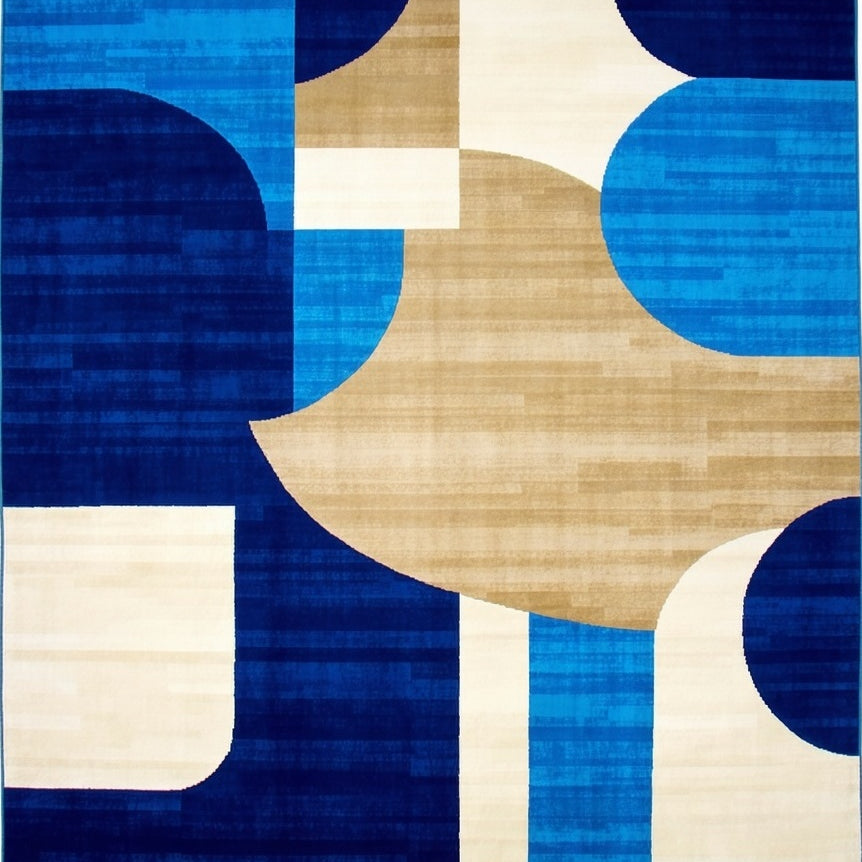 Bold Blue and Beige Geometric Shapes Area for Contemporary Decor(Blue)