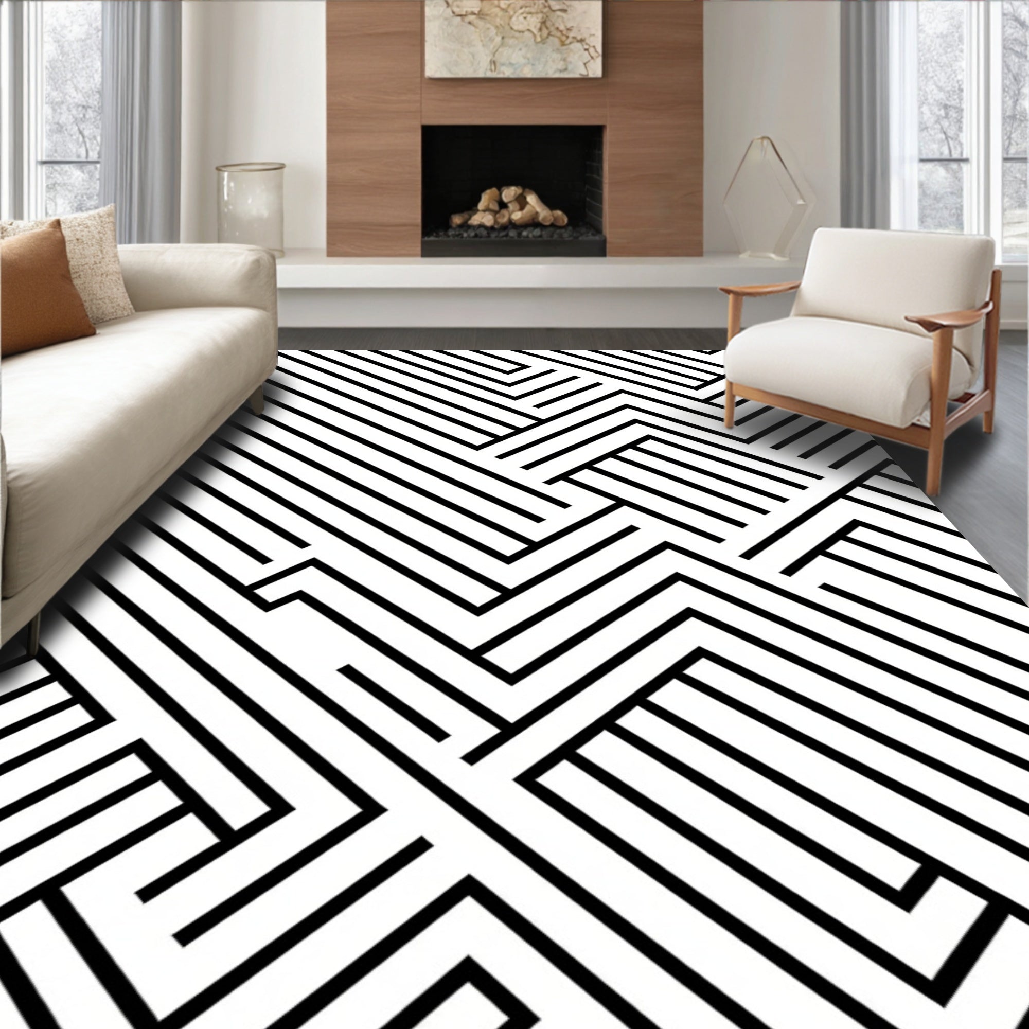 Bold Chevron Streaked with Dynamic Monochrome Accents(Black)