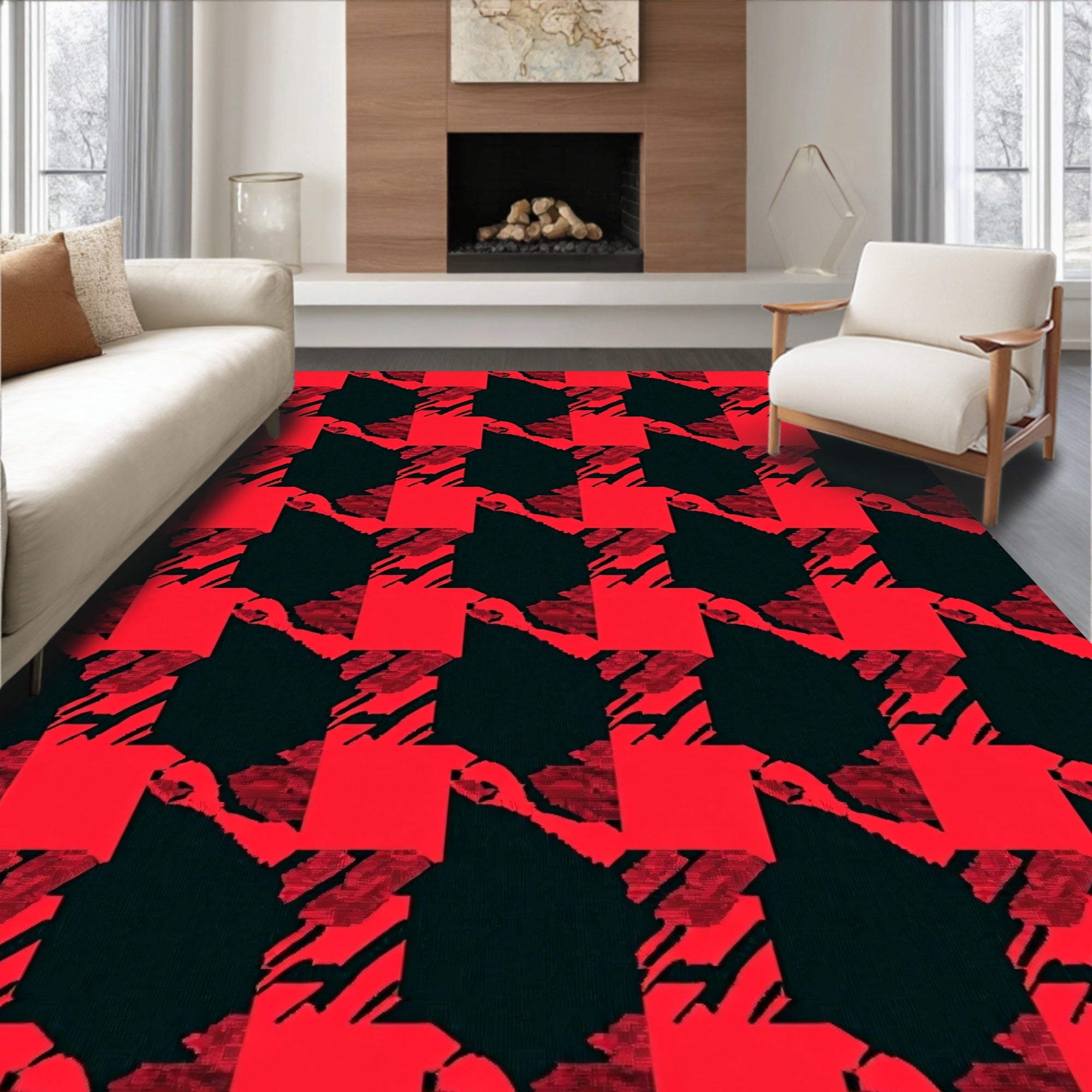 Buffalo Check Tartan Stripe Crosshatch Floor Covering(Red)