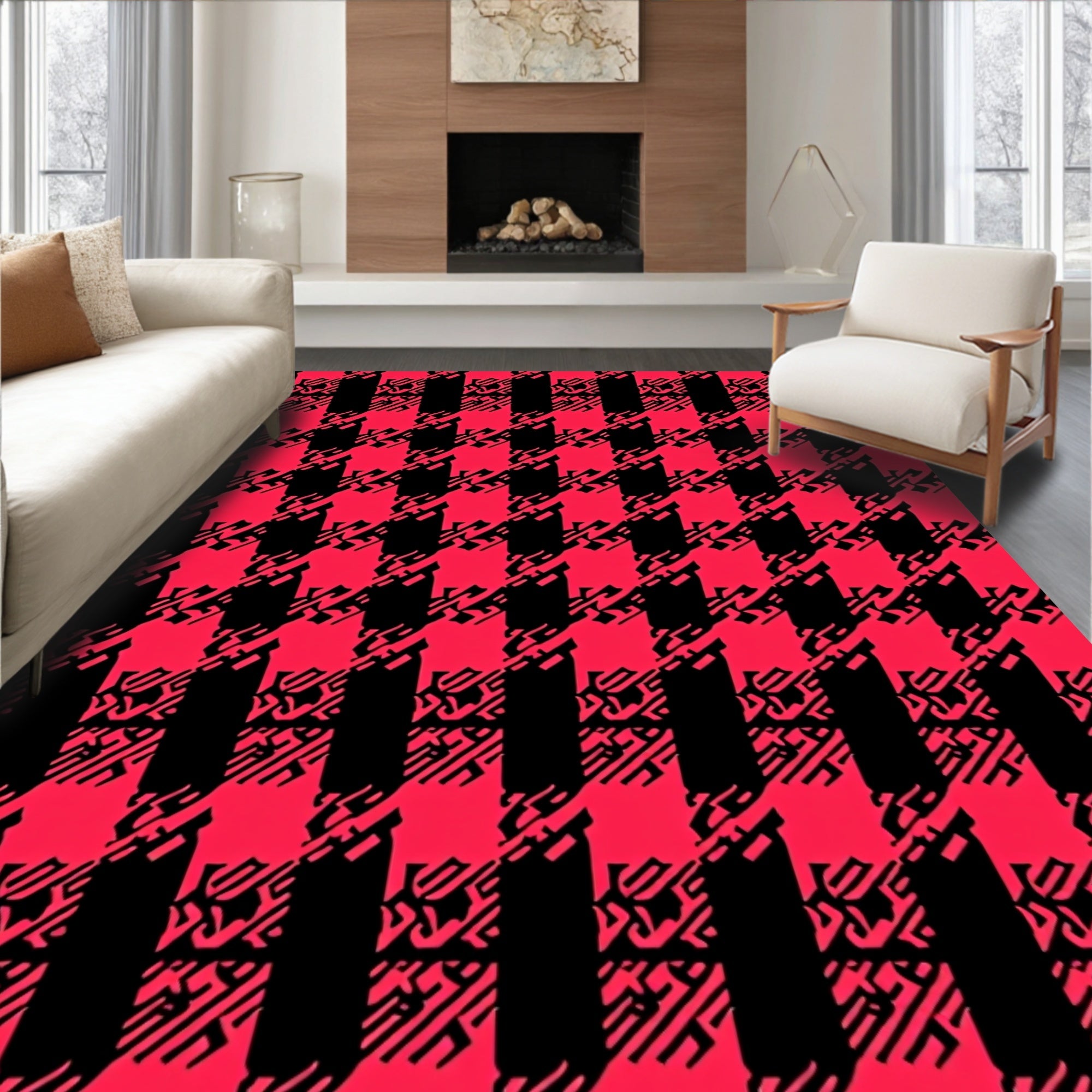 Buffalo Checkered Farmhouse Lattice Holiday Hearth Accent(Red)