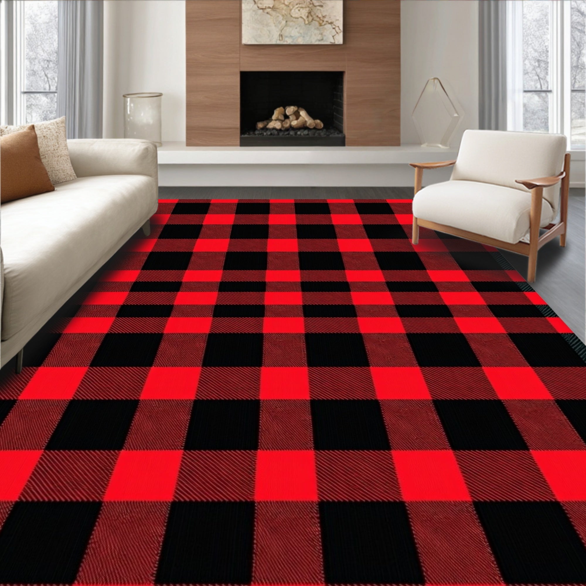 Buffalo Checkered Farmhouse Cabin Vintage Holiday Rustic(Red)