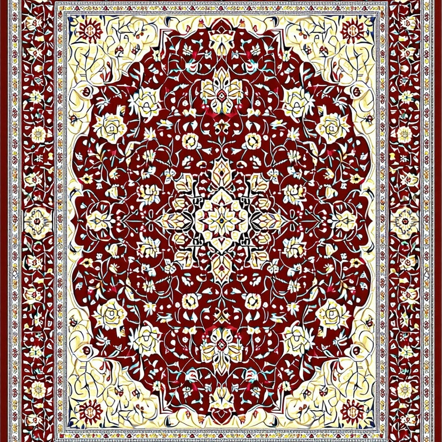 Burst Design with Intricate Petal Motifs and Symmetrical Flourishes(Red)
