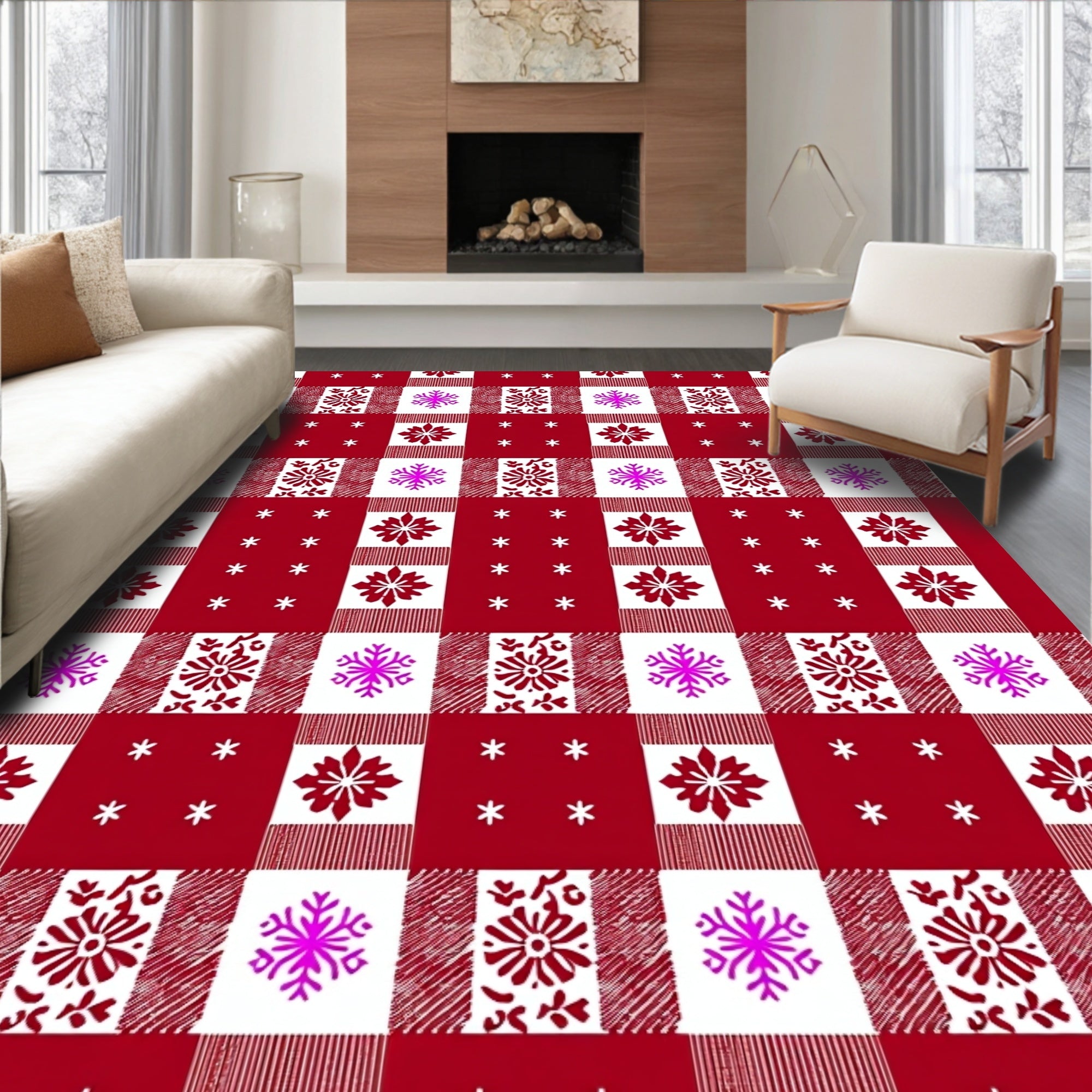 Buffalo Plaid Farmhouse Snowflake Holiday Decorative Accent(Red)