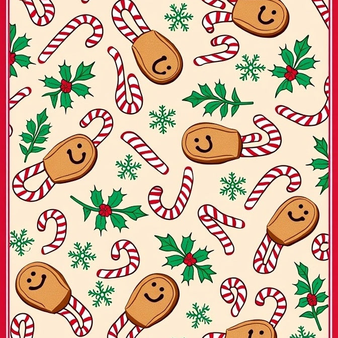 Cane Wonderland with Smiling Biscuit Characters and Winter Motifs(Beige)