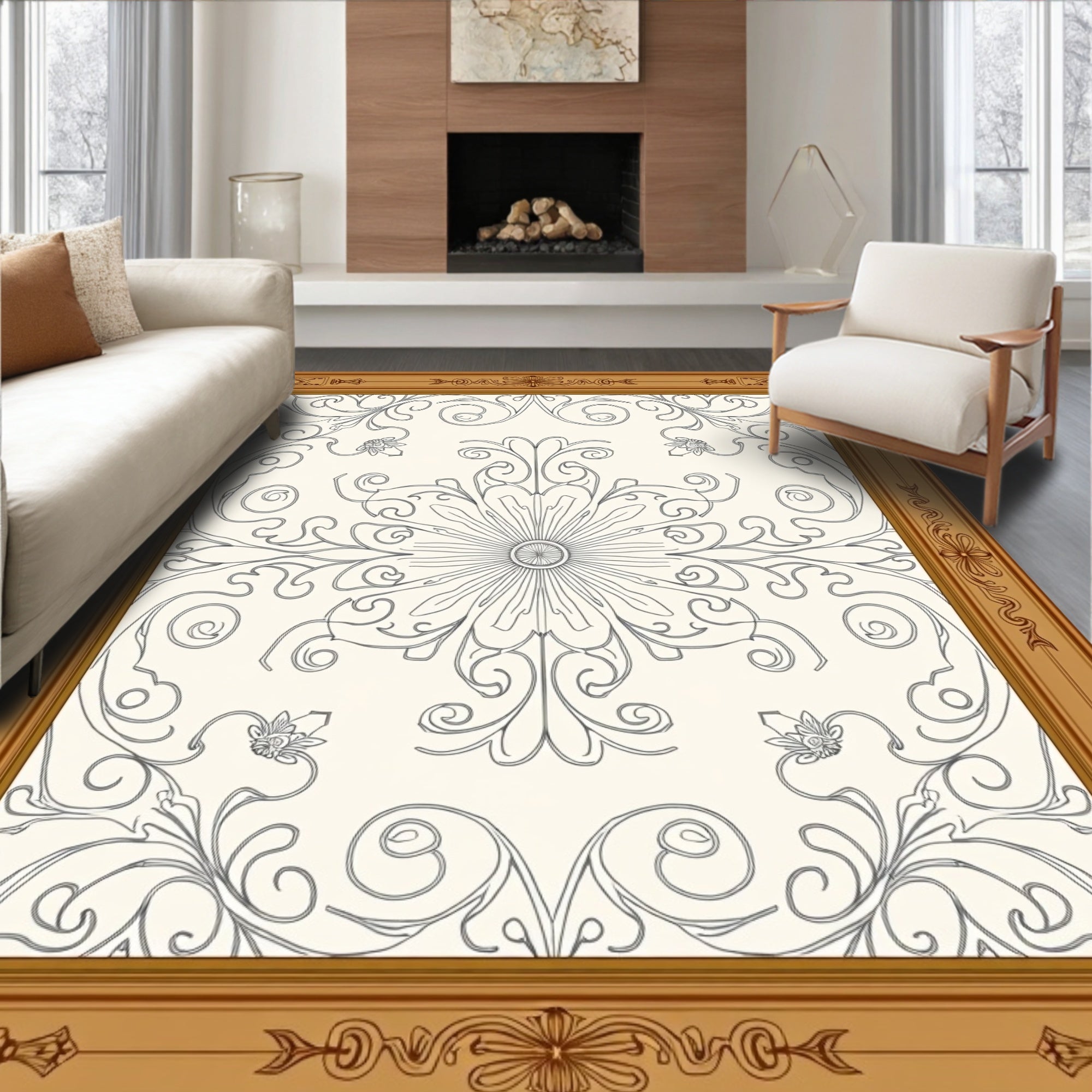 Caria Collection Elegant Ocean Medallion Area With Non Slip Backing(Ivory)