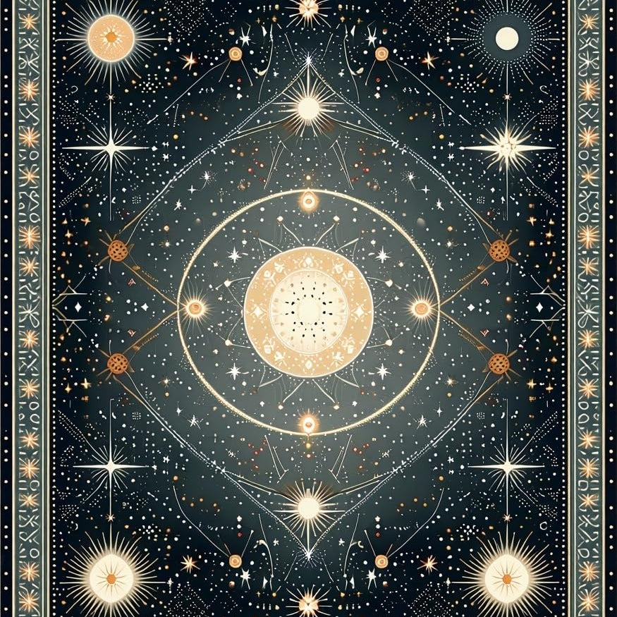 Celestial Phases with Sunburst and Astral Clockwork Motifs(Black)