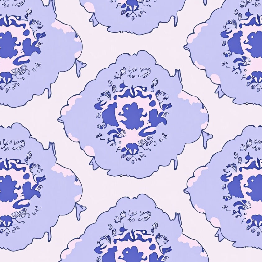 Celestial Puff Motif with Whimsical Contour Design(Blue)