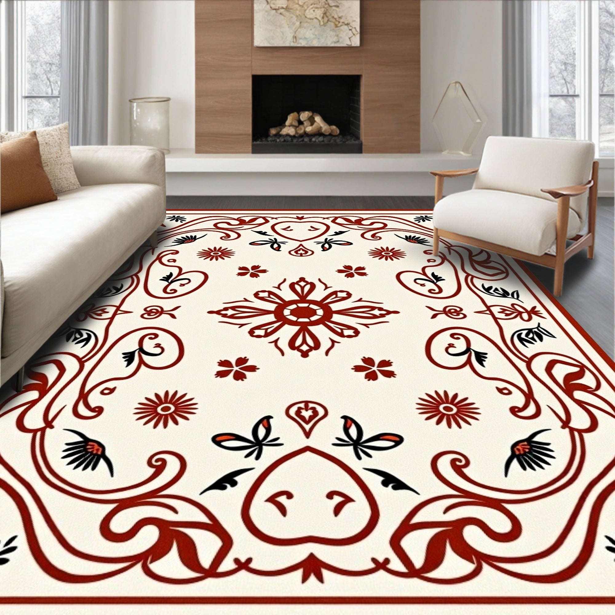 Bordered Accent Area Modern Low Pile Beige(Beige)