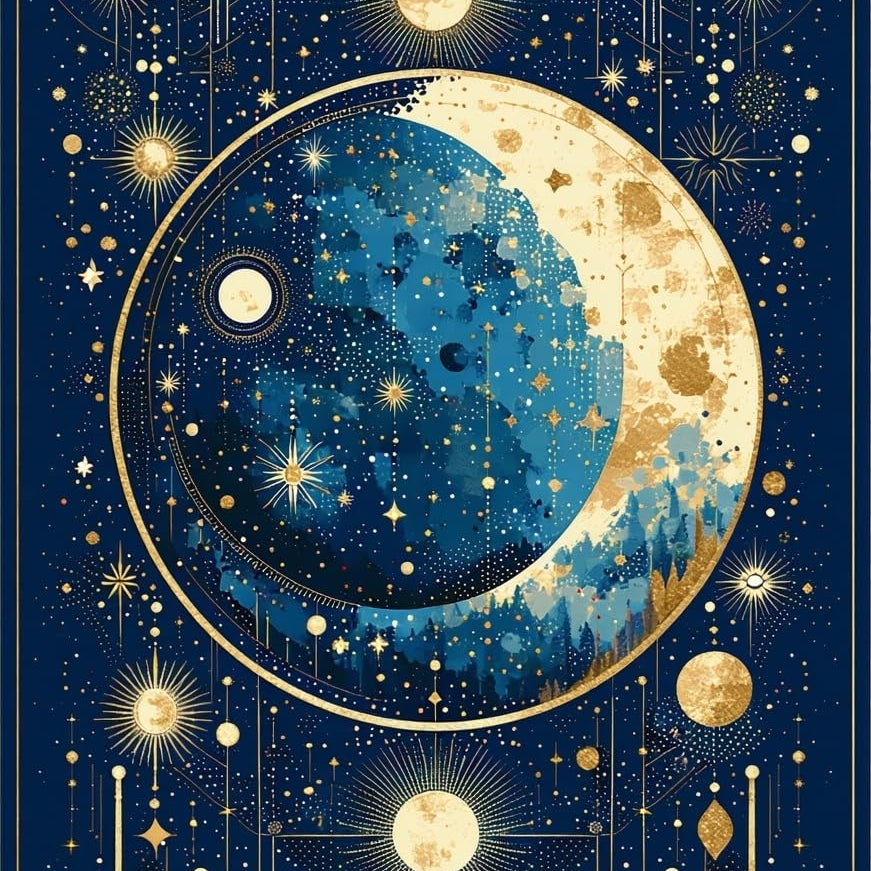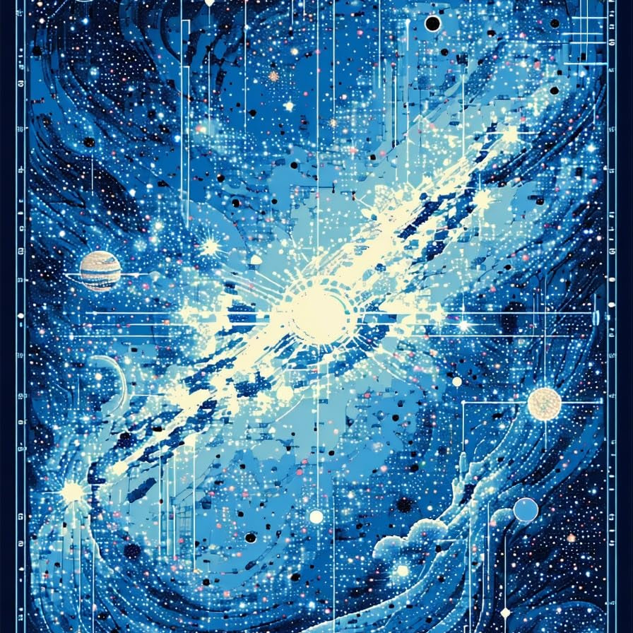 Celestial Swirl with Constellation Accents and Whimsical Star Motifs(Blue)