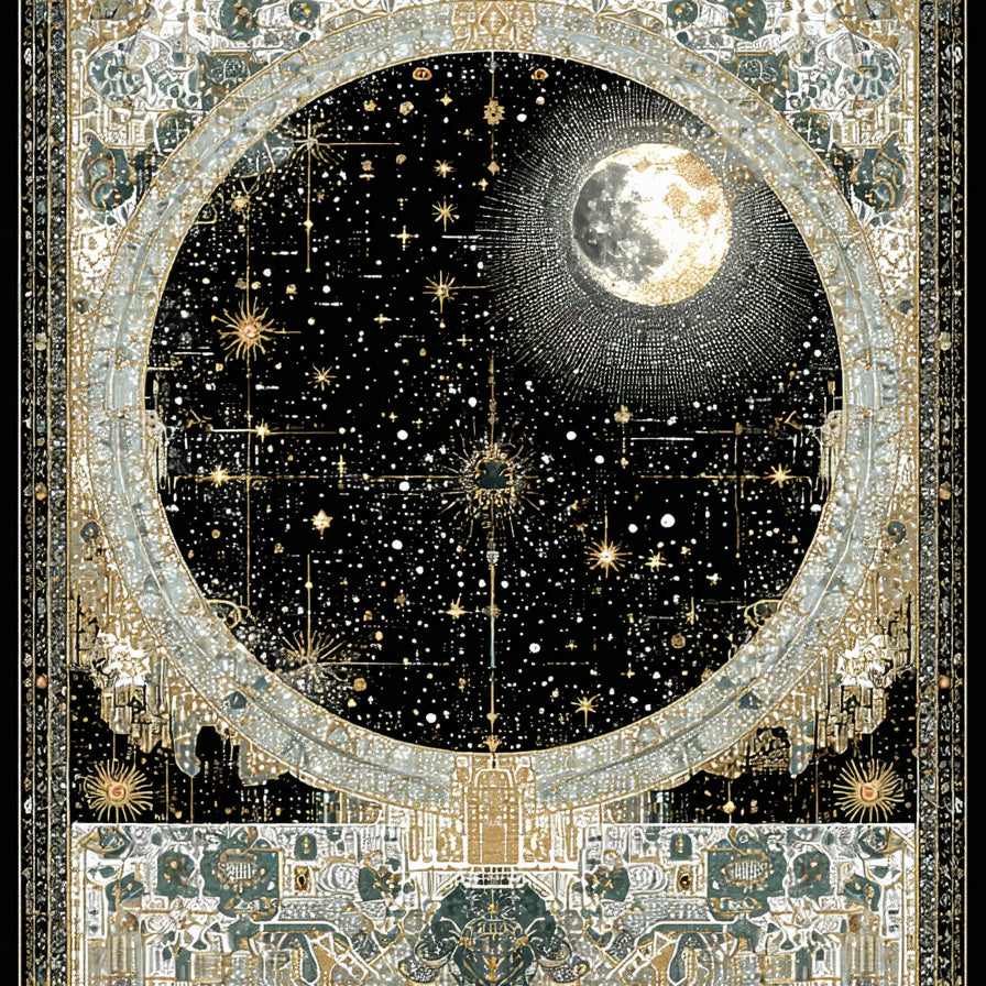 Celestial Sunburst Moon Phase Mystical Zodiac Inspired Star Map Design(Black)