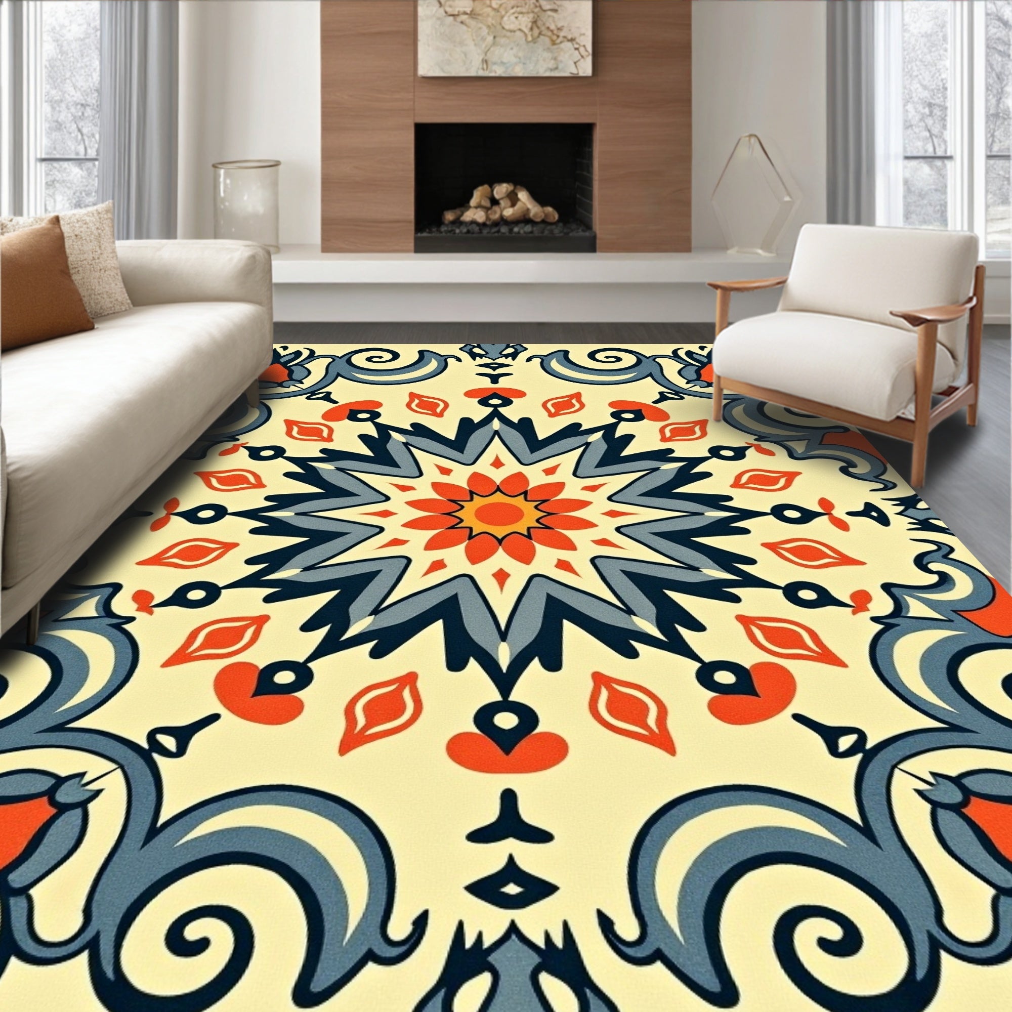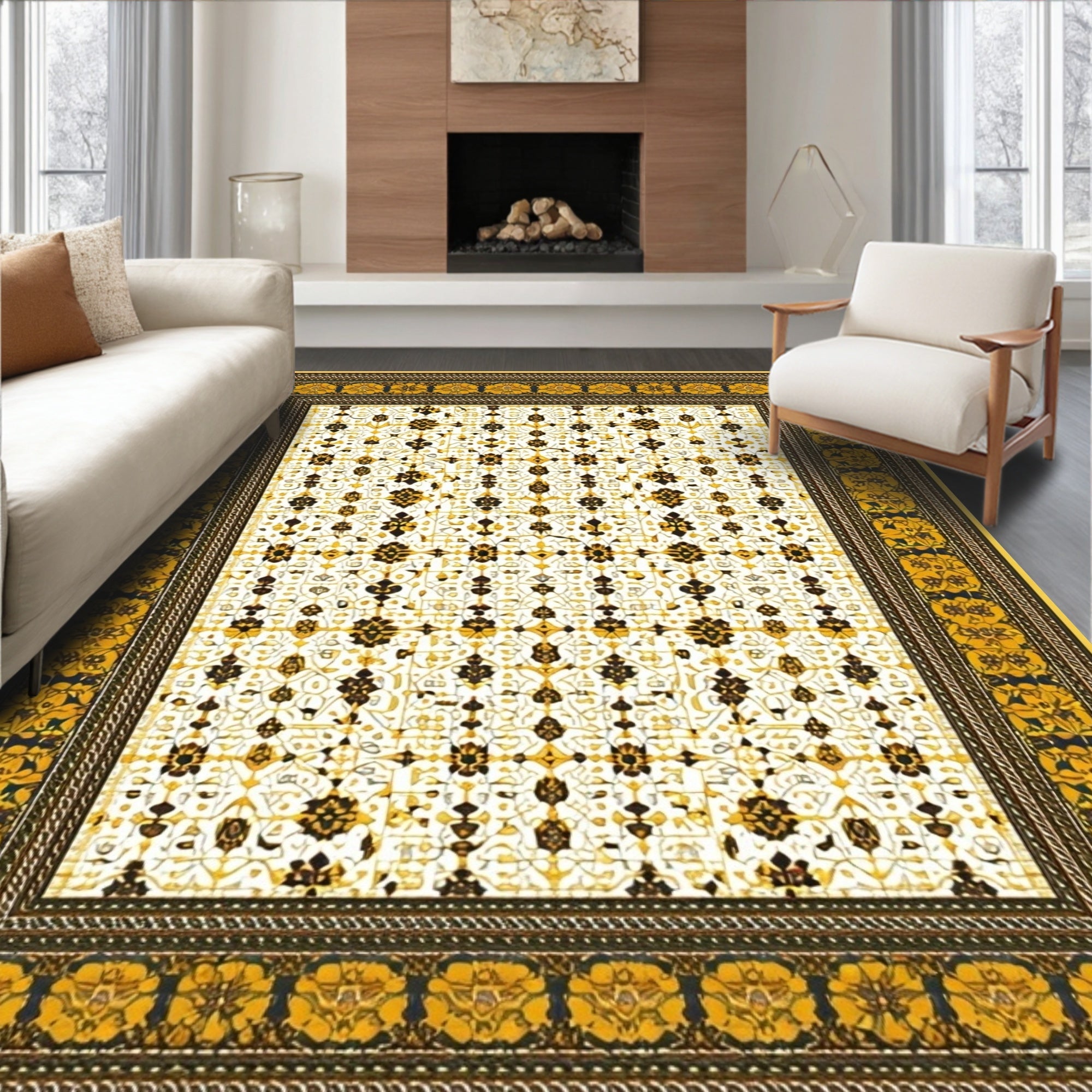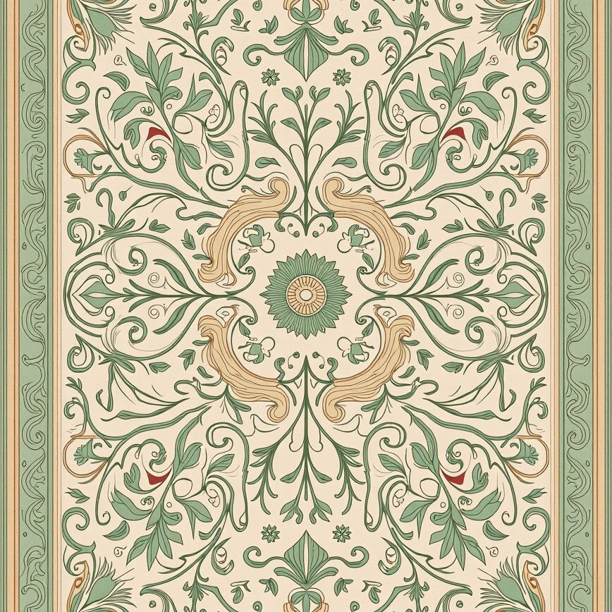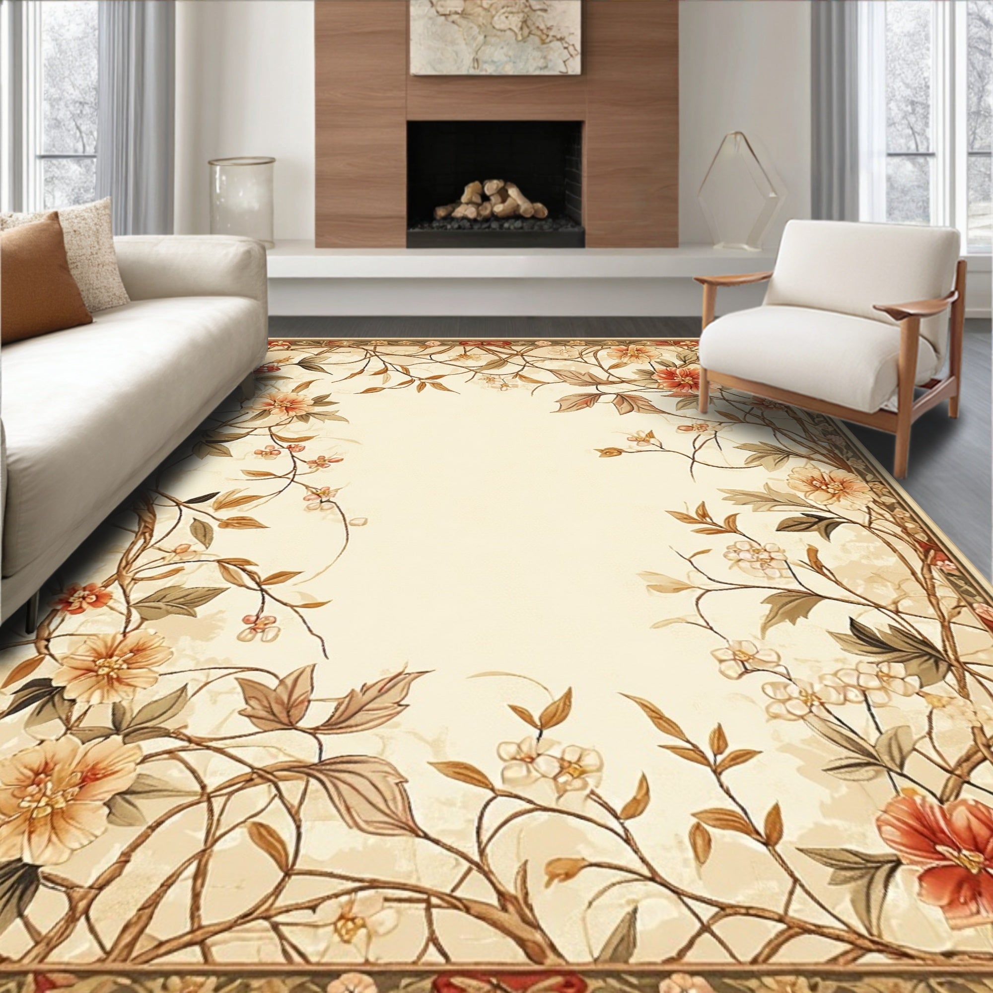 Botanical Ornate Scrollwork Design Floor Covering(Beige)