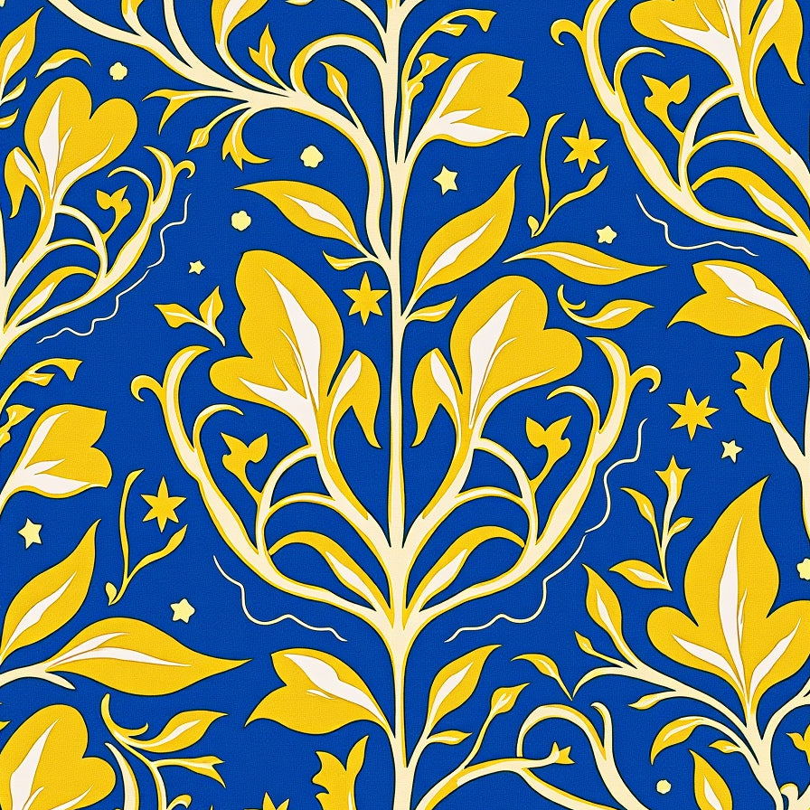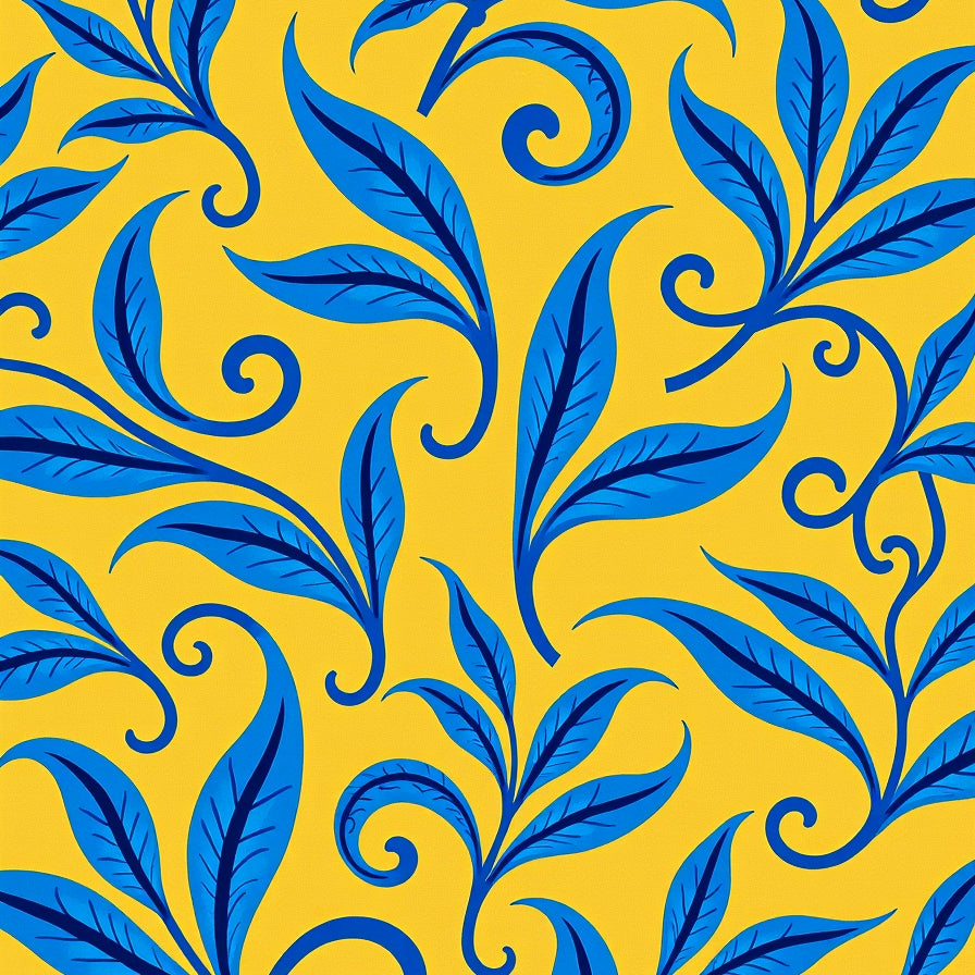 Botanical Scrollwork with Stylized Leaf Vines(Yellow)