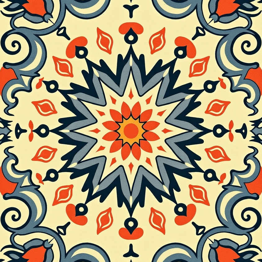 Botanical Petal Motif with Interlocking Vine Details(Blue)