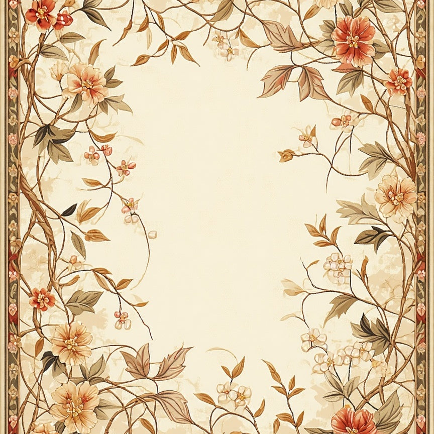 Botanical Scrollwork with Interlocking Vine Motifs(Beige)