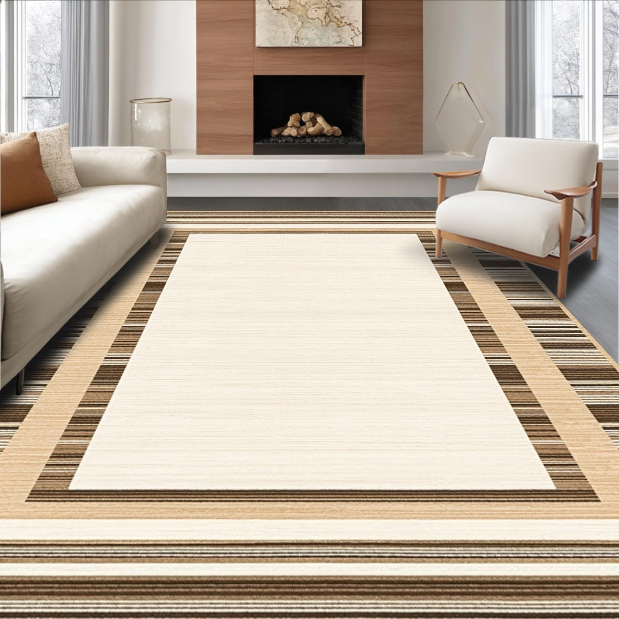 Charming Checkered Round Area Beige and White Design for Home(Brown)