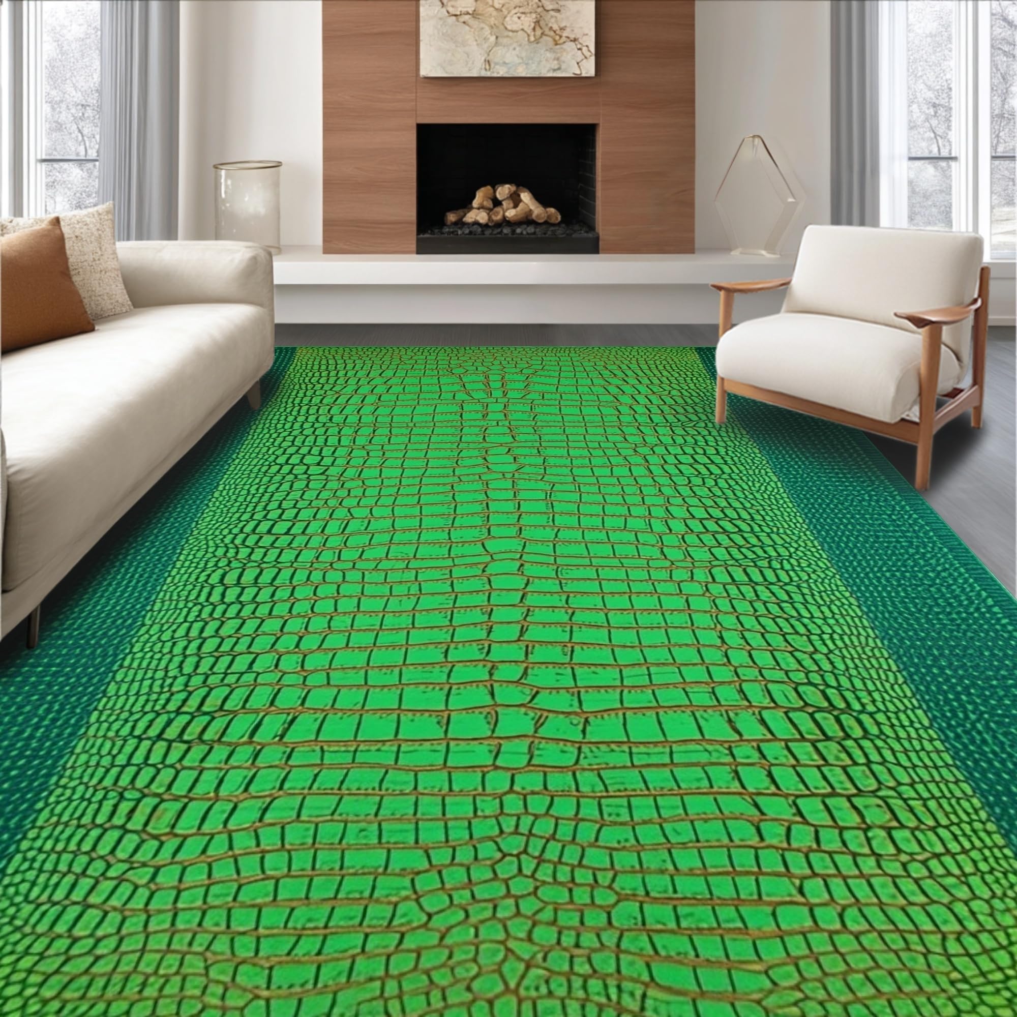 Charming Nature Inspired Rug with Abstract Leaf Motifs and Gradient Effects(Green)