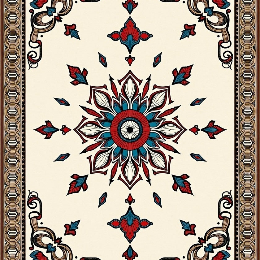 Accent in Beige with Abstract Geometric Shapes and Border Detail(Beige)