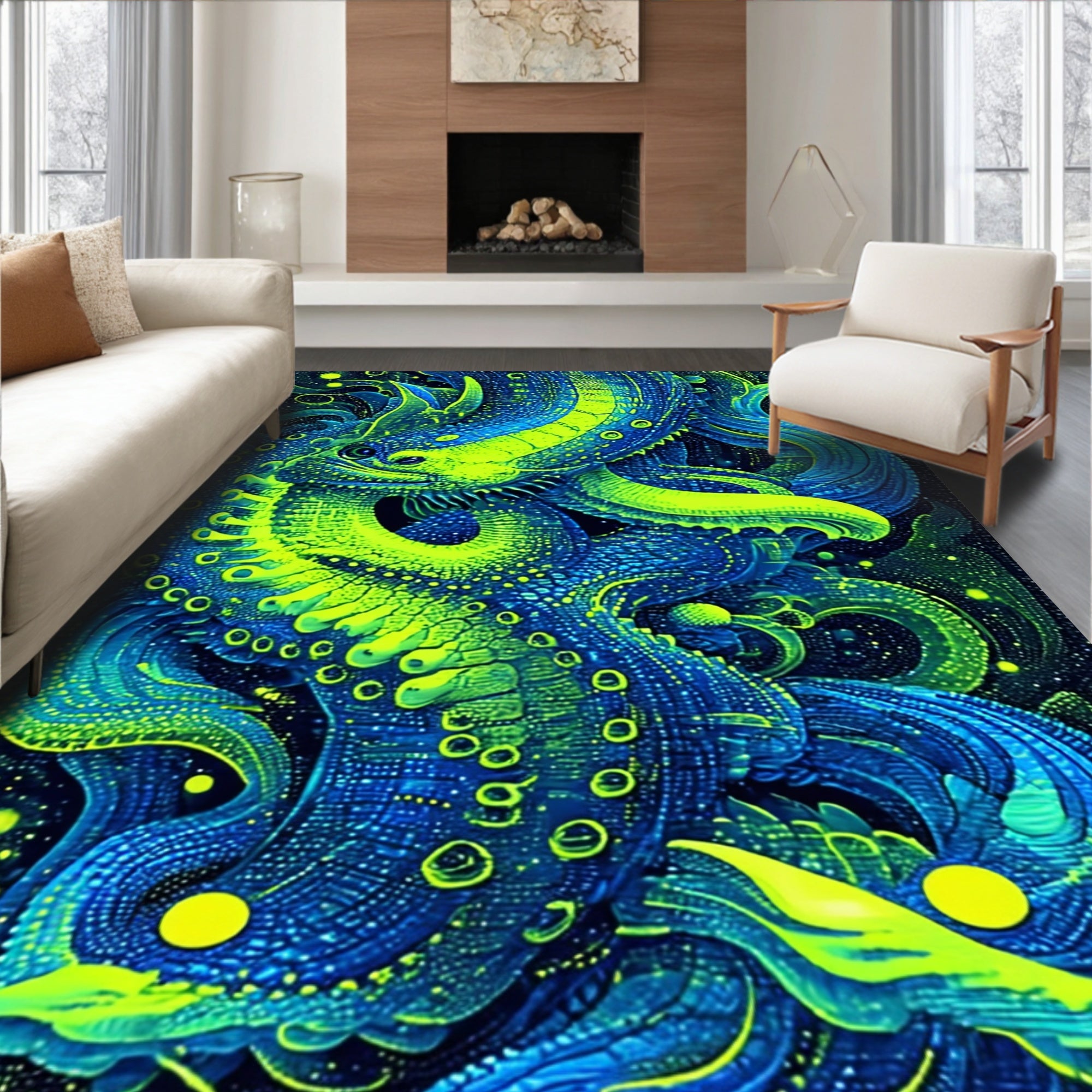 Abyss Gradient Seafoam Accent Modern Distressed Print(Blue)