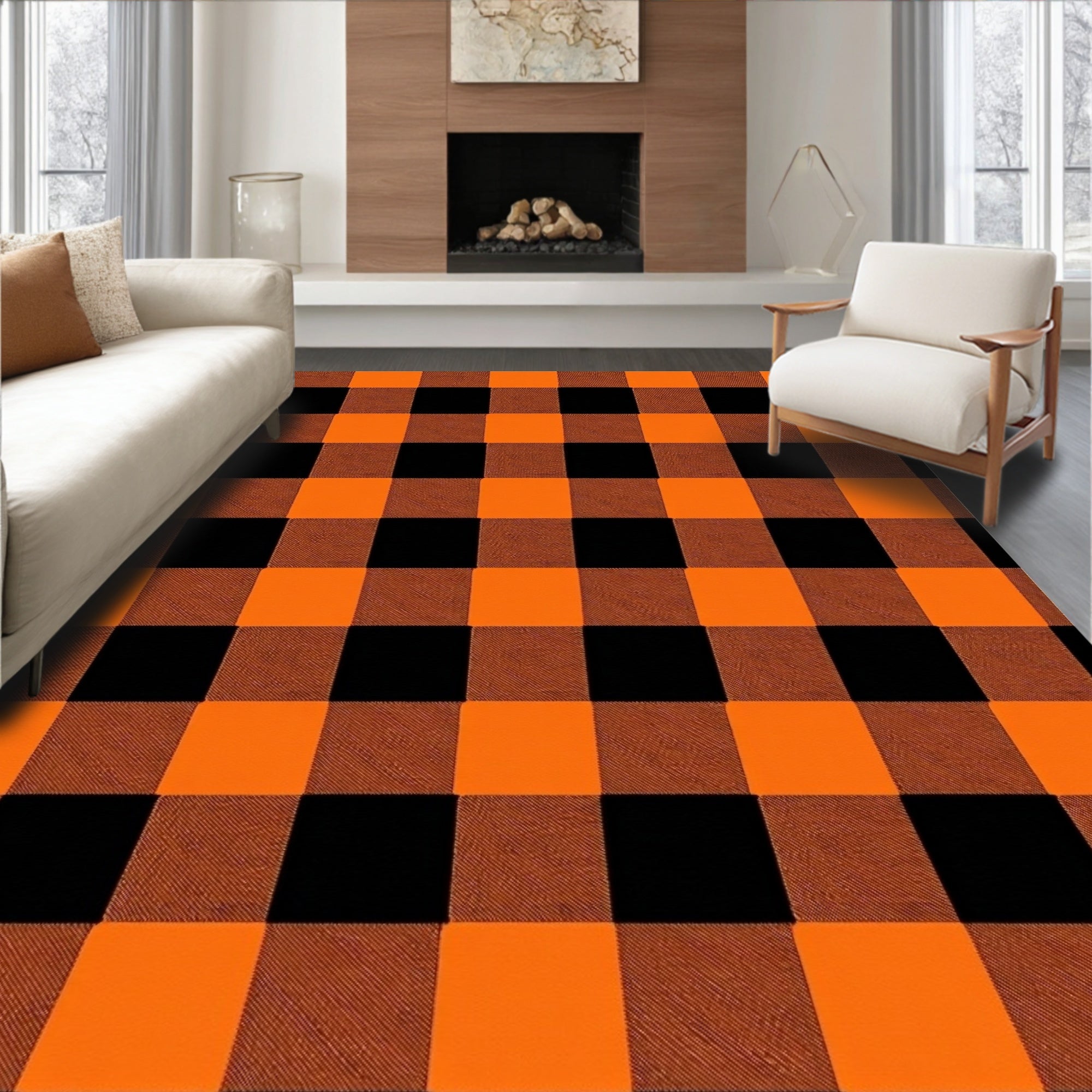 Buffalo Check Plaid Doormat with Bold Checkered Design(Orange)