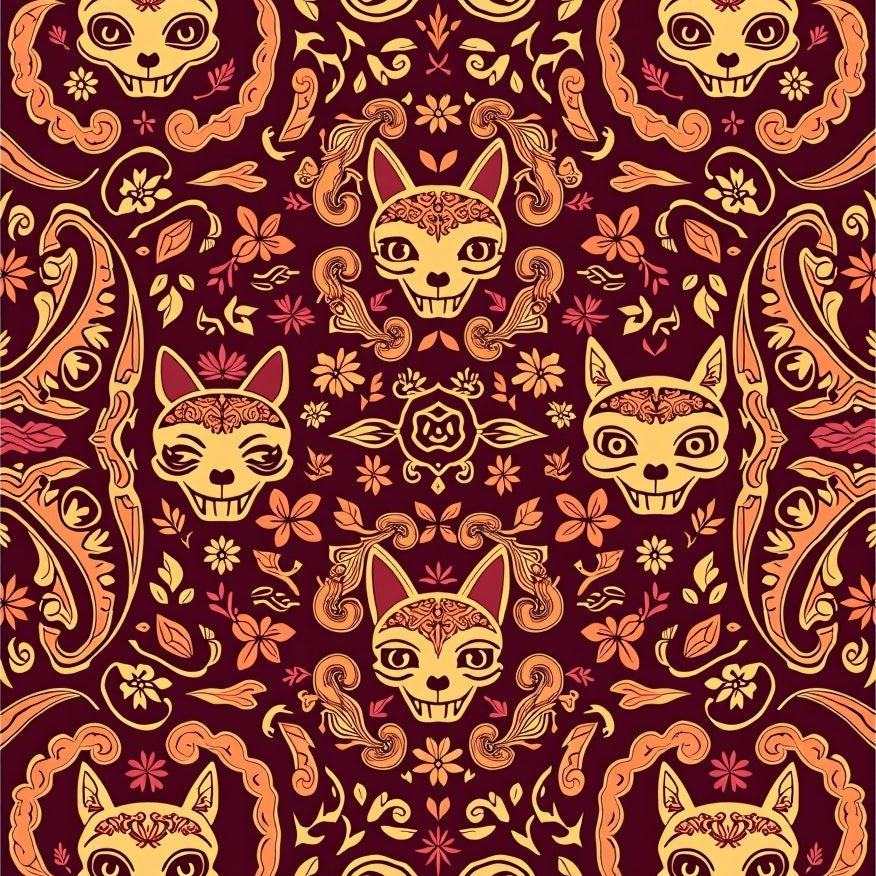 Calavera Kitty Blossom Harvest Autumn Doorway(Brown)