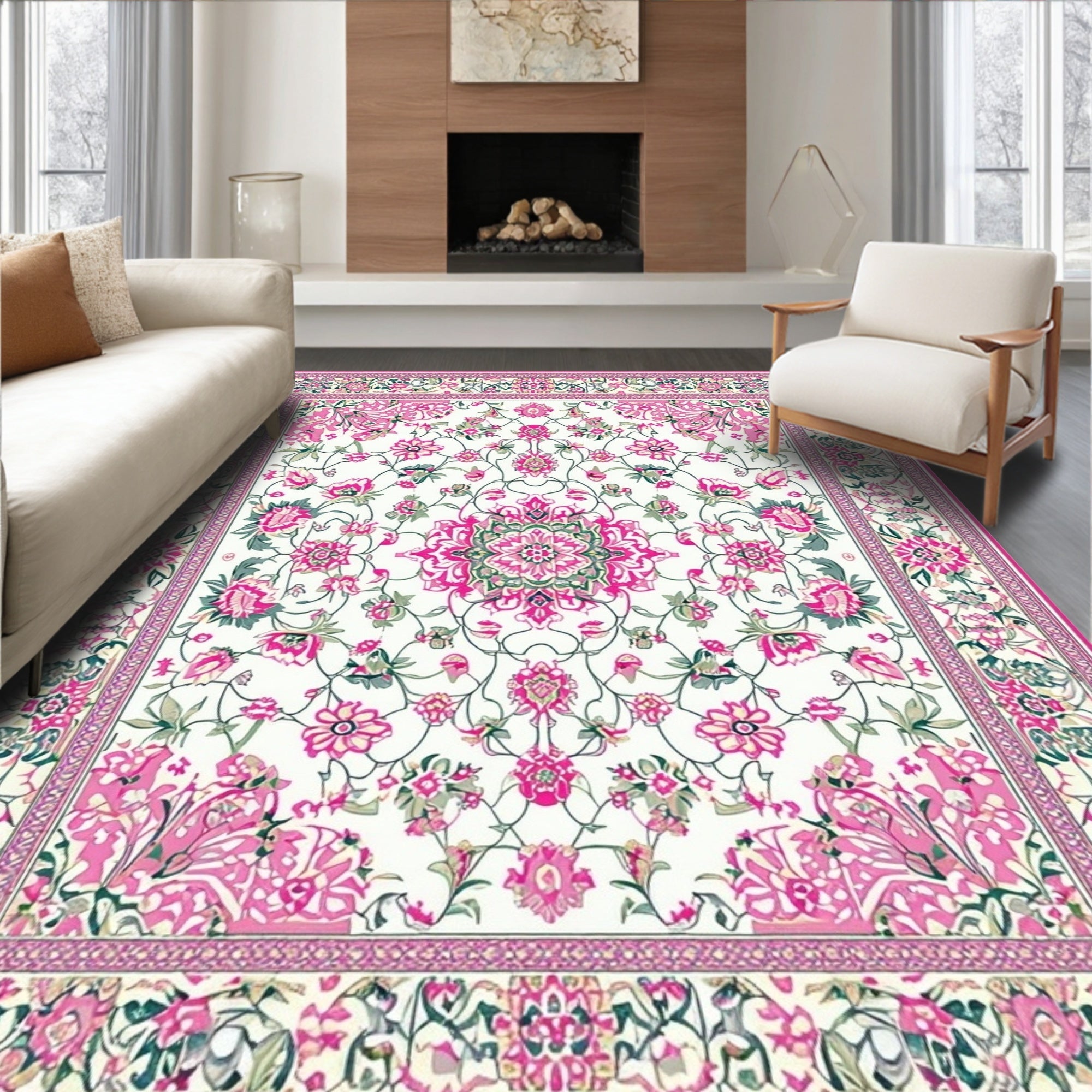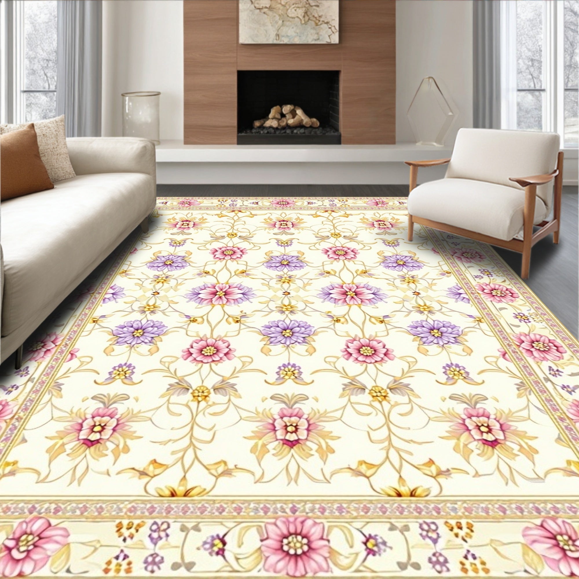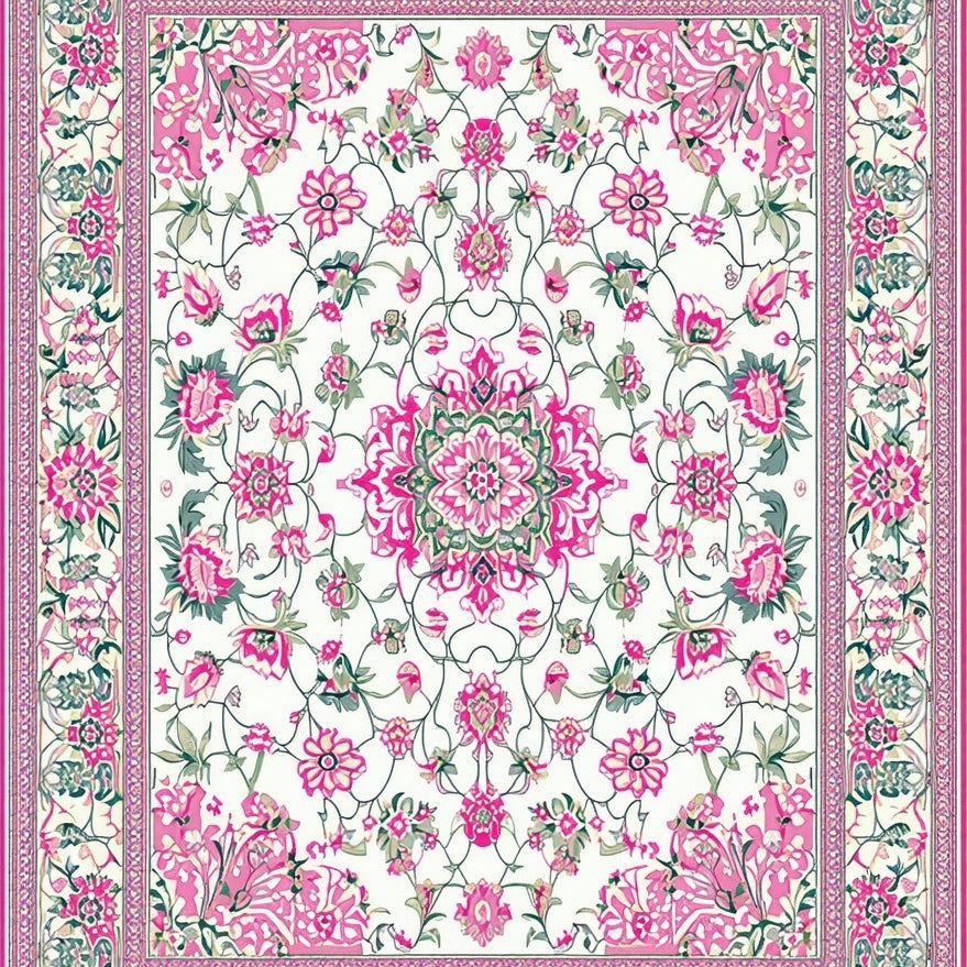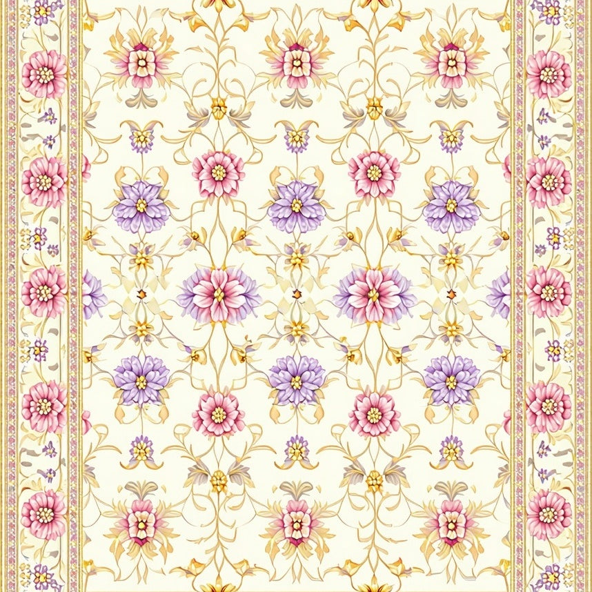 Charming Vintage Floral Area with Pastel Accents and Ornate Design(White)