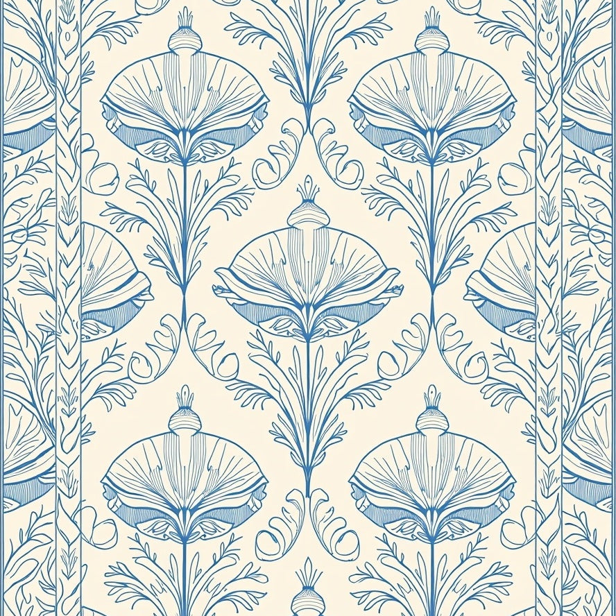 Celestial Bloom Trail Featuring Lunar Phases and Delicate Motifs(Blue)