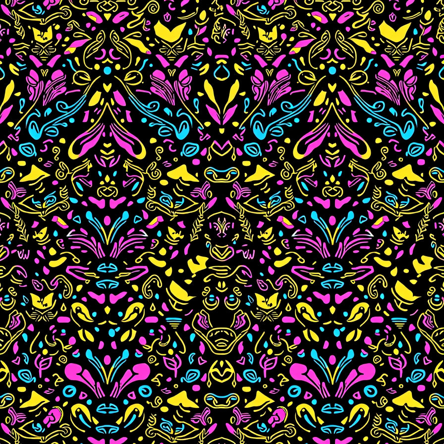 Cheerful Cat Parade with Multicolor Illuminated Dots and Shapes(Black)