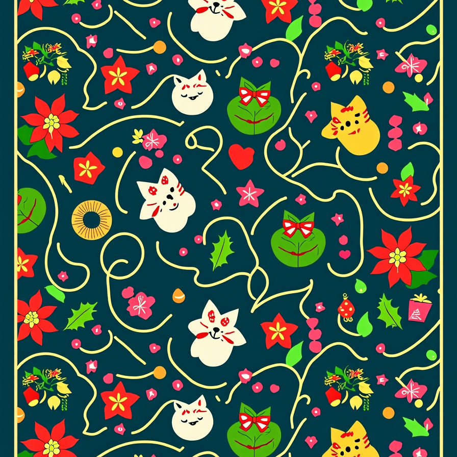 Cheerful Cat And Holly Berry With Festive Interlocking(Red)