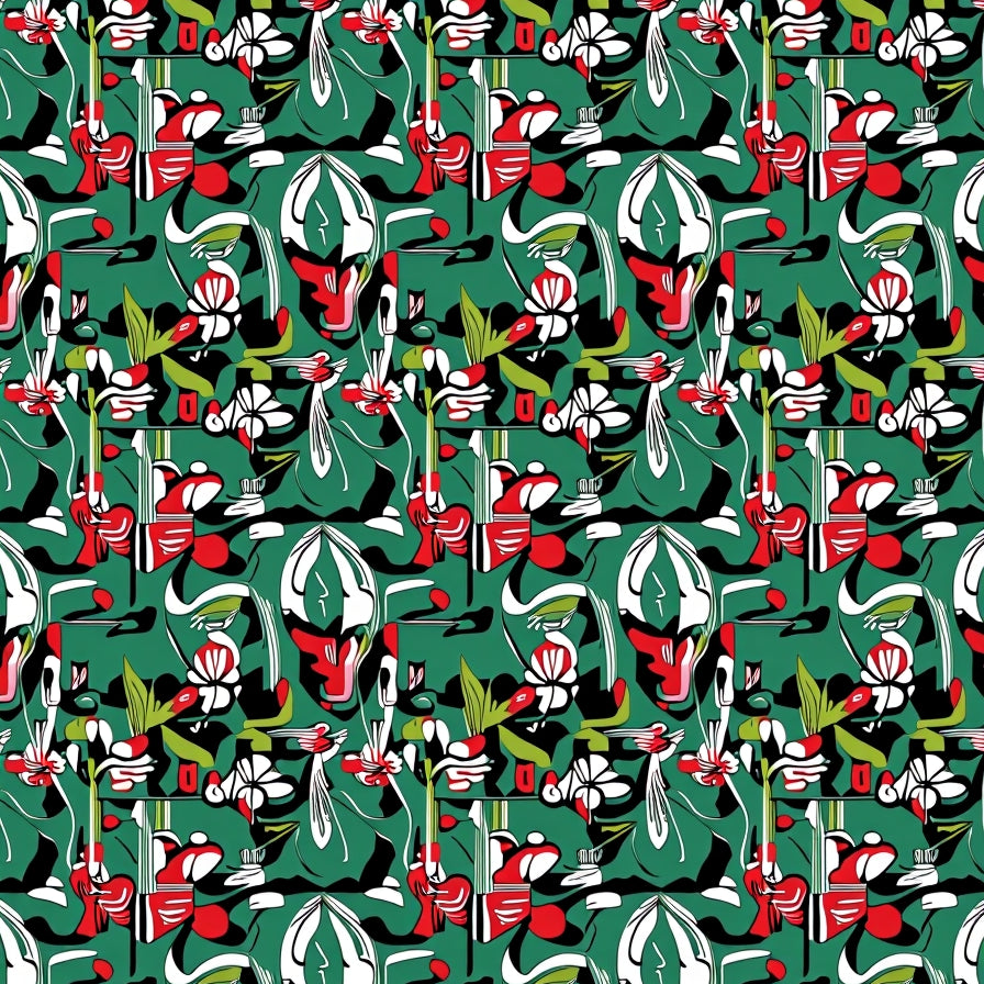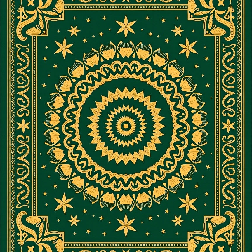 Celestial Petal with Spiraling Floral and Starbursts(Green)