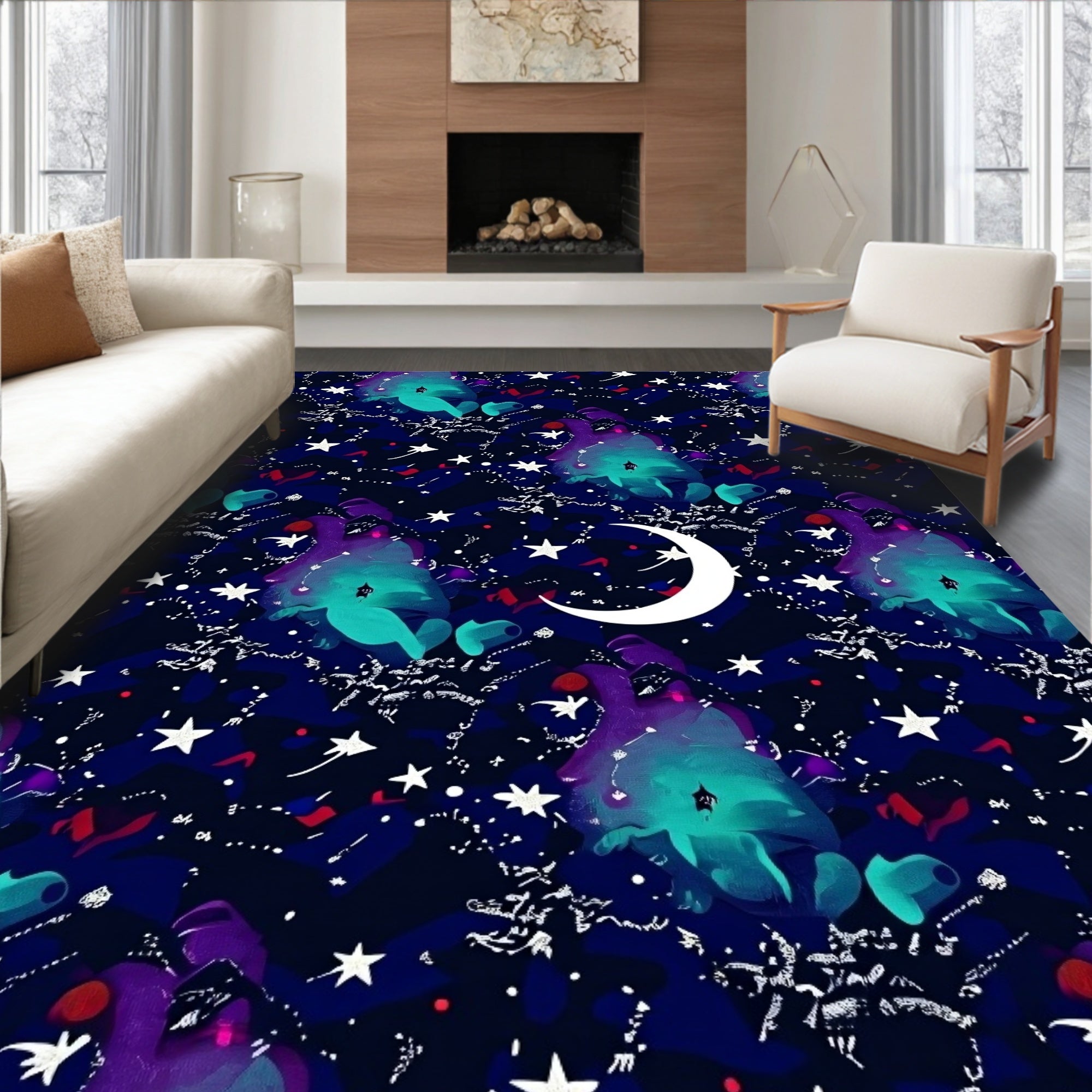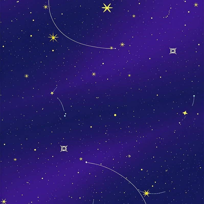 Celestial Nightscape Featuring Twinkling Stars and Moon Motif(Blue)