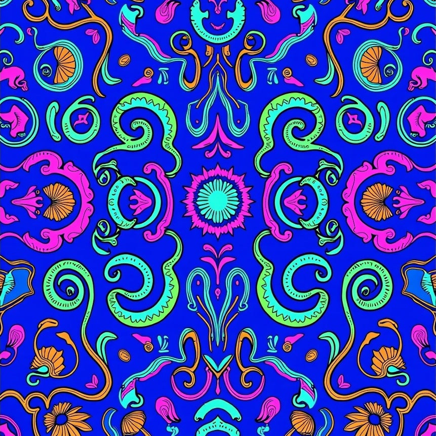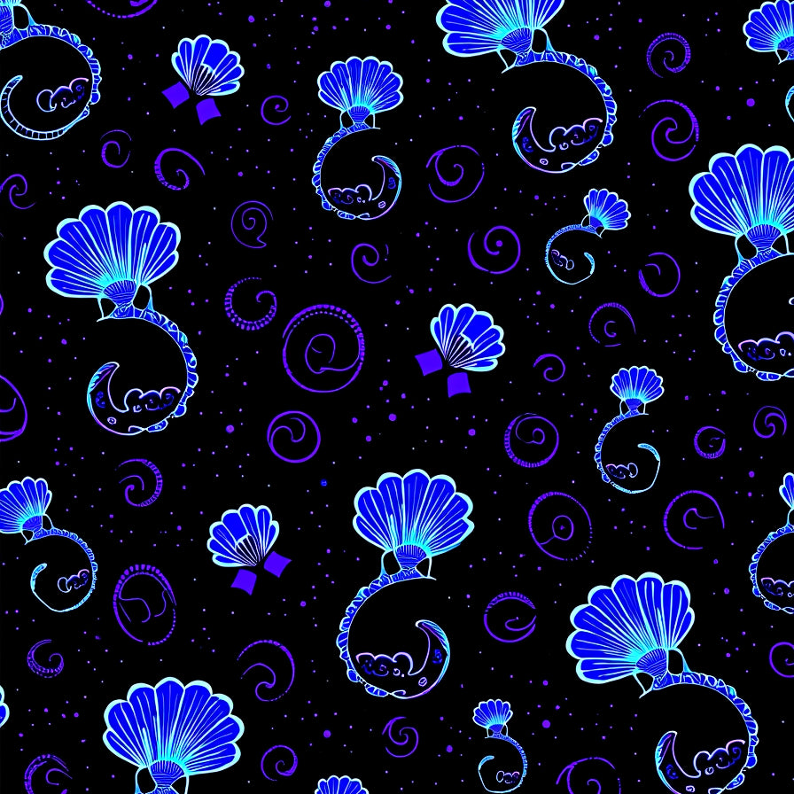 Celestial Ocean Fantasy with Interwoven Marine Creatures(Blue)