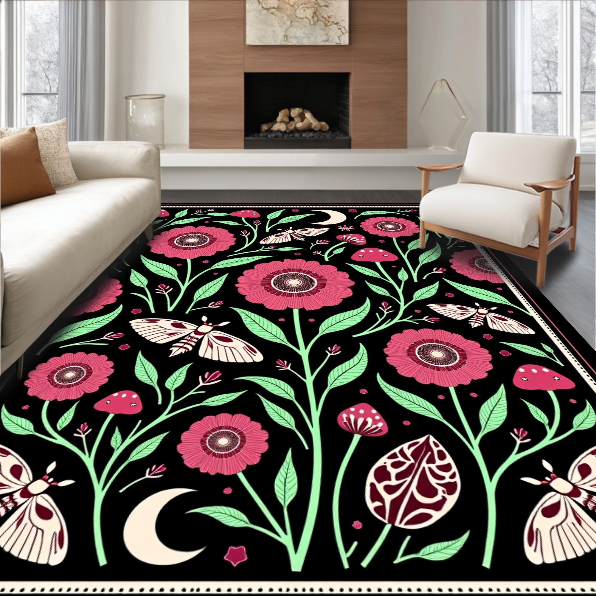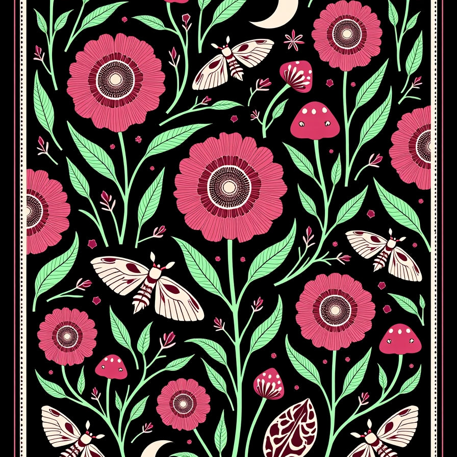 Celestial Mushroom Grove with Moth and Poppy Botanical(Pink)