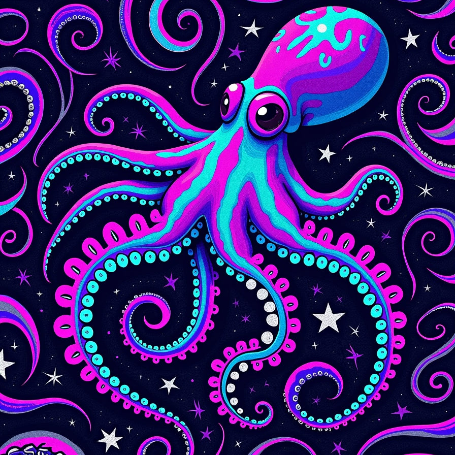 Celestial Octopus Tentacle Swirl with Cosmic Starfield Design(Pink)