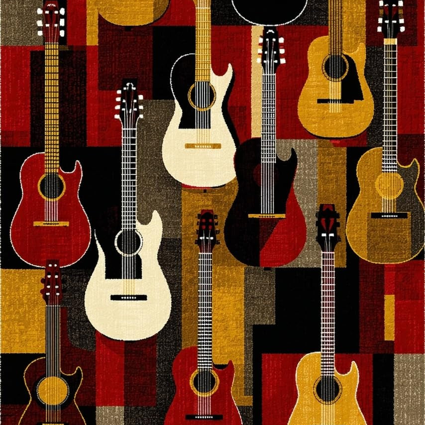 Chic Abstract Red and Yellow Composition(Black)