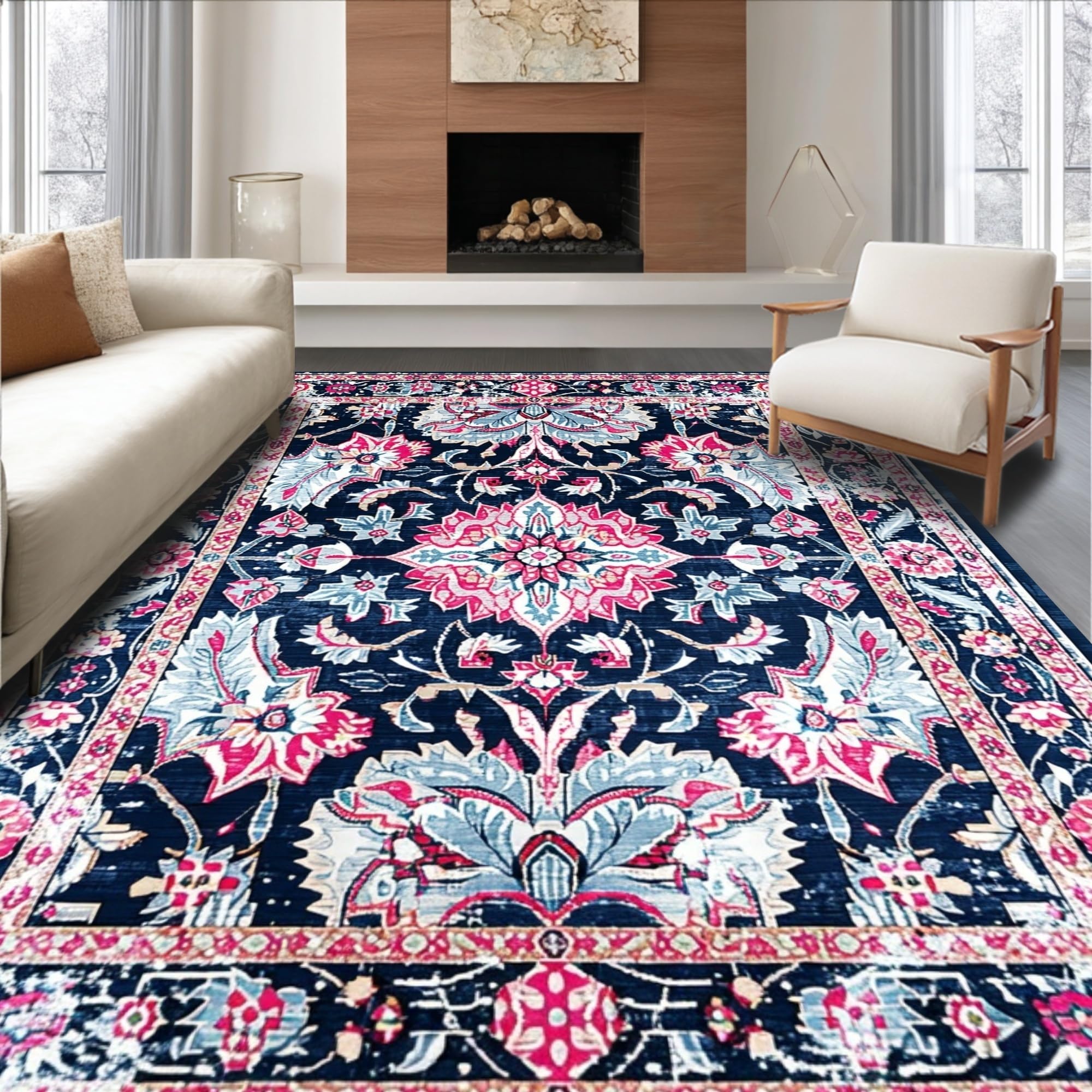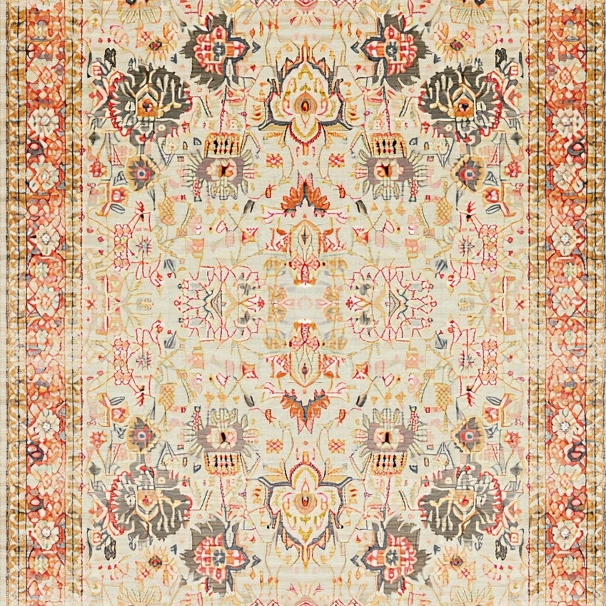 Chic Boho Floral Medallion Area Pet & Kid Friendly Easy Care(Beige)