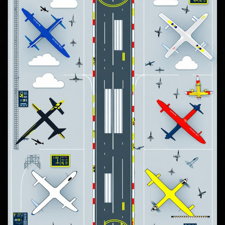 Airfield Runway Play Area Rug Featuring Airplanes And Control Towers(Gray)